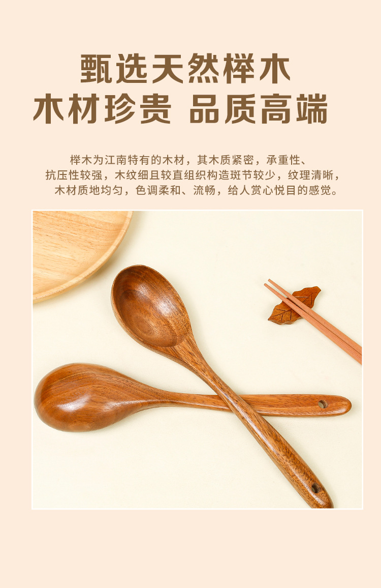 Cuchara de madera Cuchara de sopa grande de madera maciza Sopa de mango largo Cuchara de sopa japonesa Cuchara de madera Cuchara doblada Cuchara de avena Cuchara de olla caliente de madera Grabado