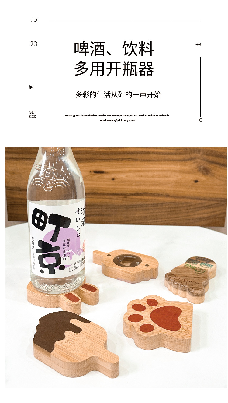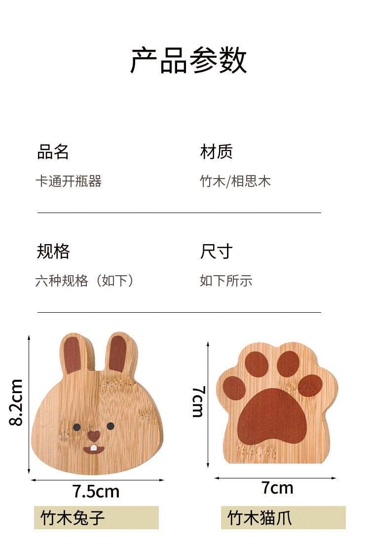 | Colores | Abrebotellas de madera de amor-pie-negro,Abrebotellas de madera de acacia-pie-color,Abrebotellas de madera de bambú-helado-rosa,Abrebotellas de madera de bambú-helado-marrón,Abrebotellas de madera de bambú-conejo-marrón,Abrebotellas de bambú-garra de gato-marrón |