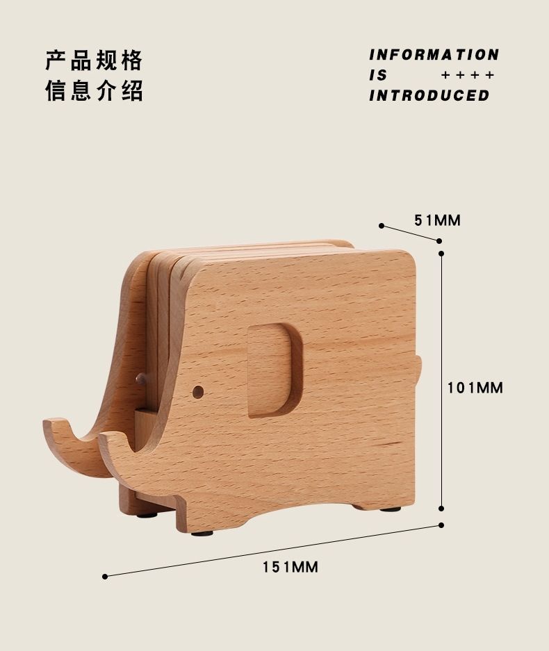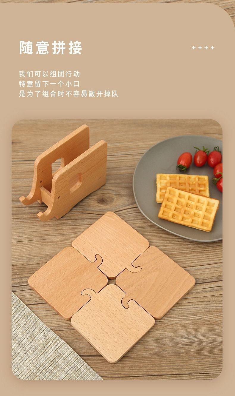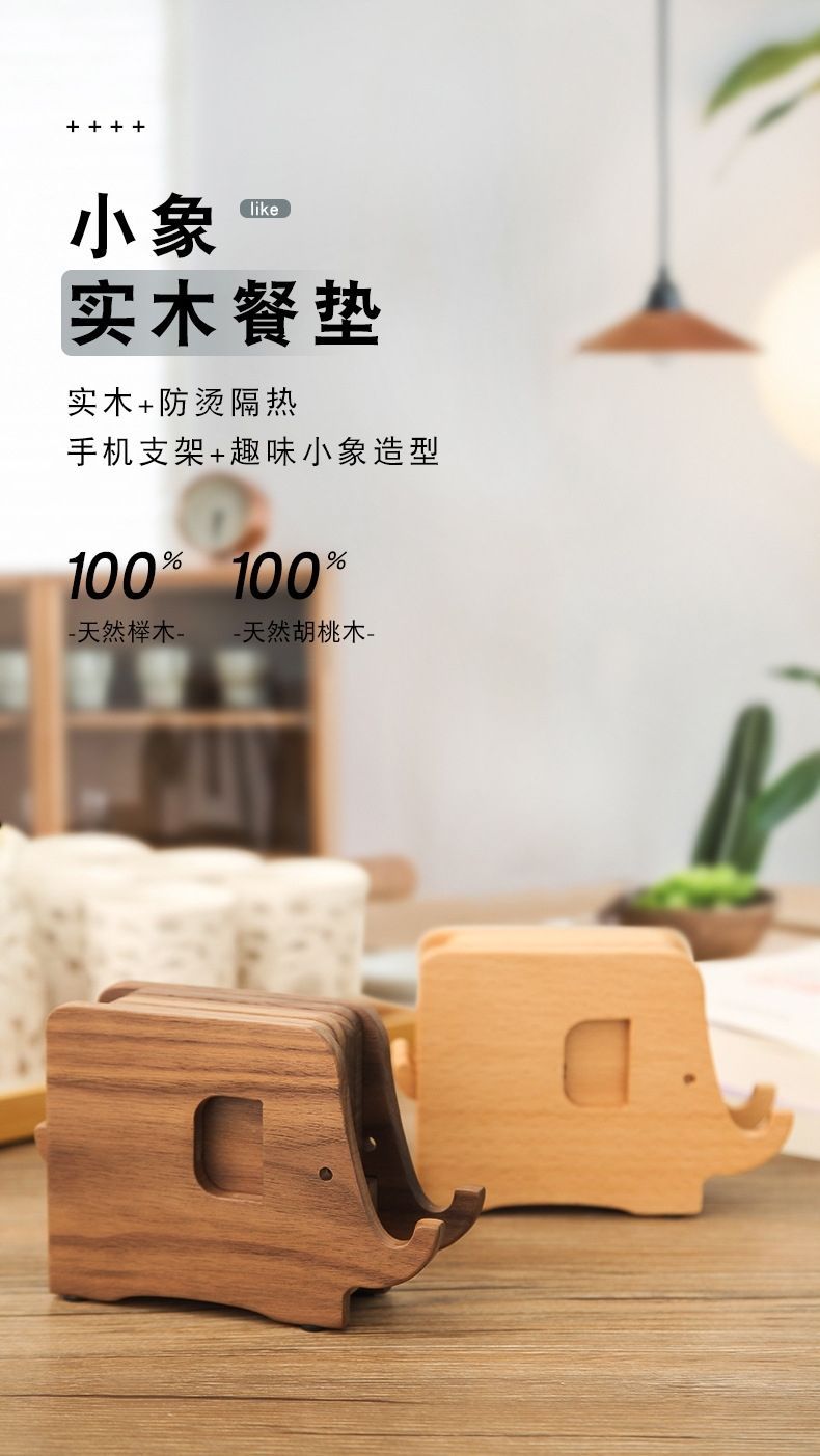 Elefante posavasos de madera maciza escritorio de madera nórdica práctica almohadilla de aislamiento térmico soporte creativo para teléfono móvil hogar cocina almohadilla de té
