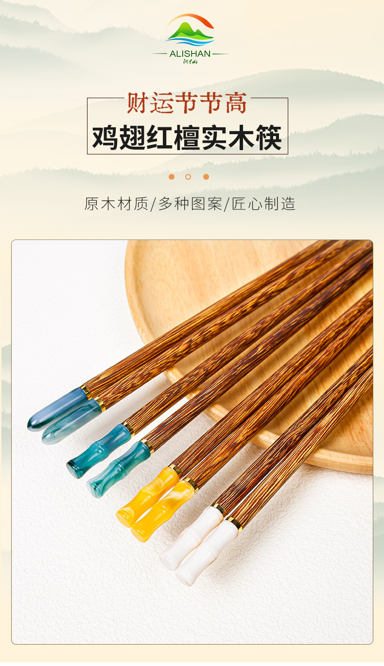 Palillos de madera de ala de pollo, palillos de madera maciza para el hogar, sin pintura, sin cera, comida, una persona, palillos, imitación, jade, regalos, palillos al por mayor
