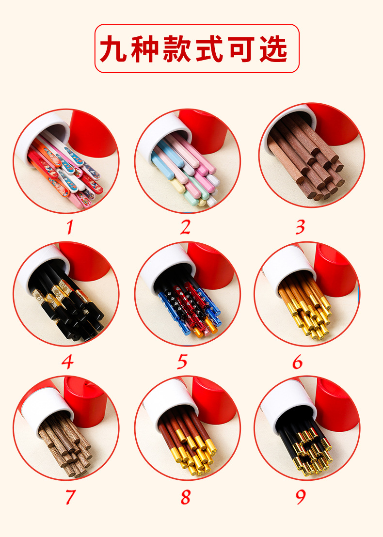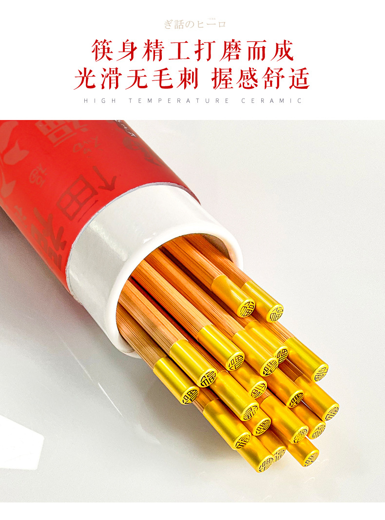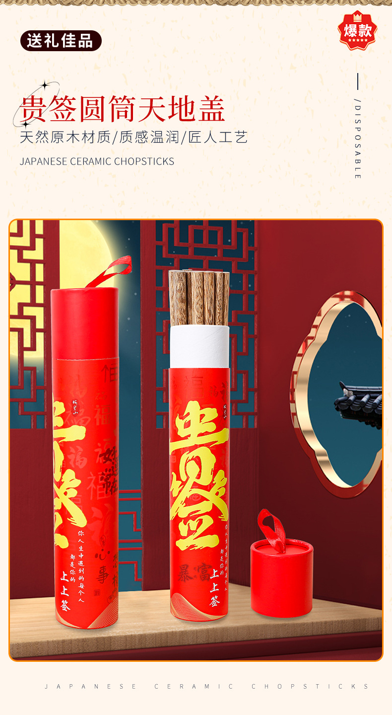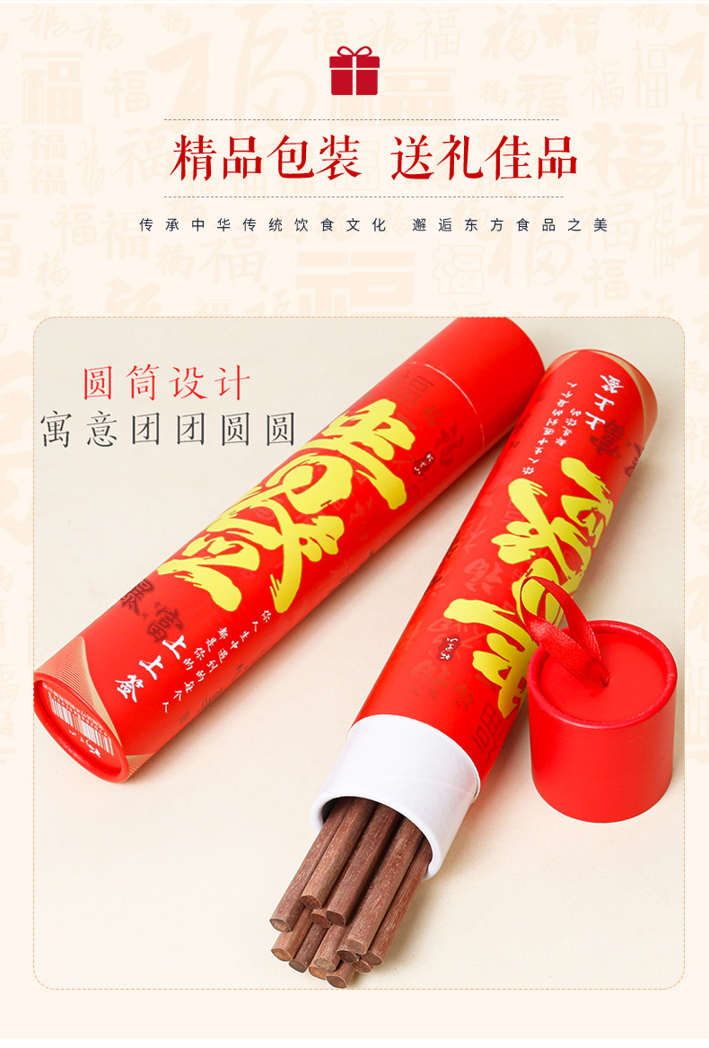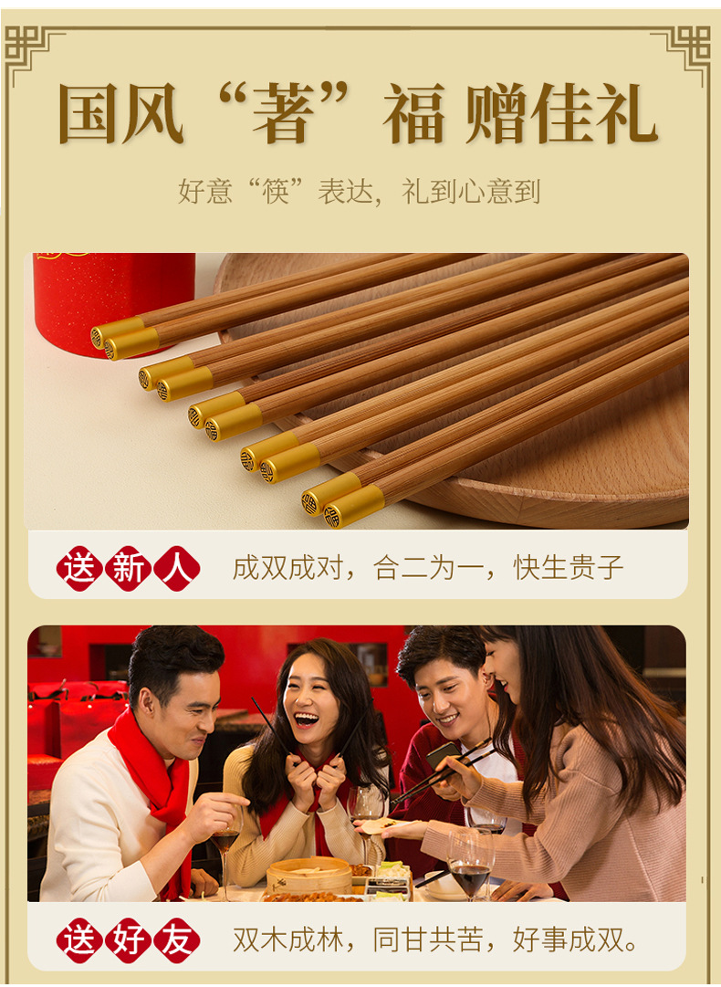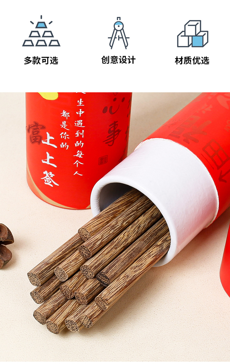 Juego de palillos de regalo de estilo de marea nacional, palillos de madera de ala de pollo, rojo chino, festivo, traje de cilindro de firma cara, suministro rápido al por mayor