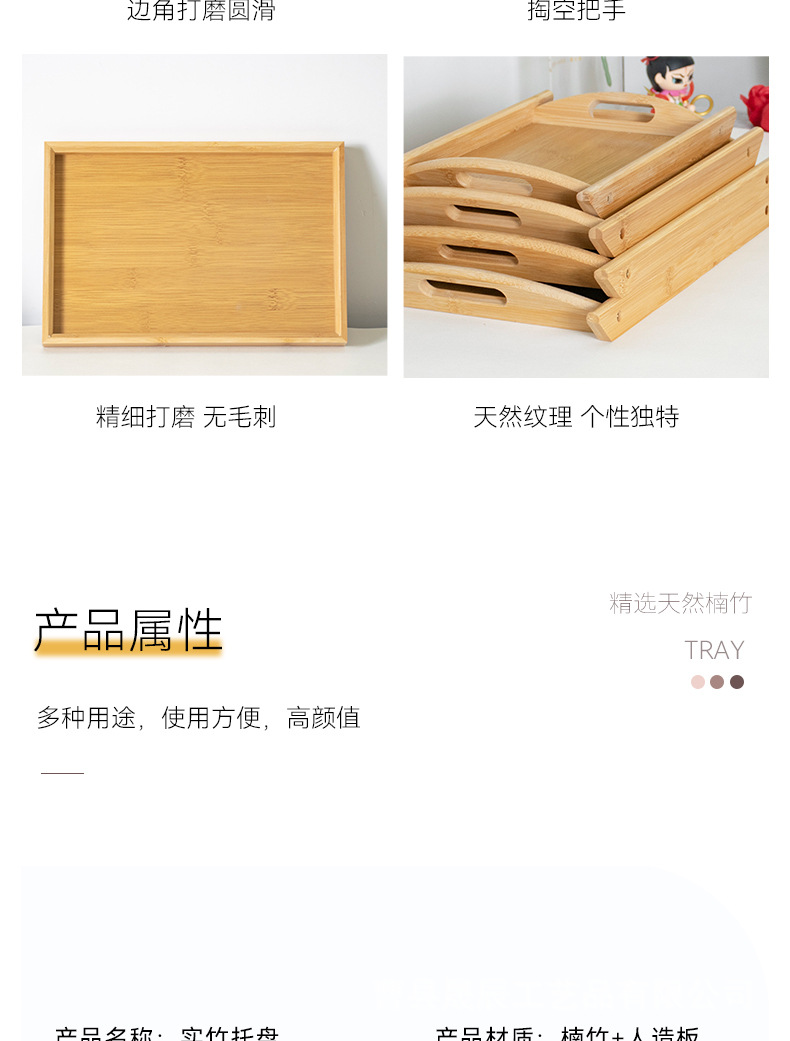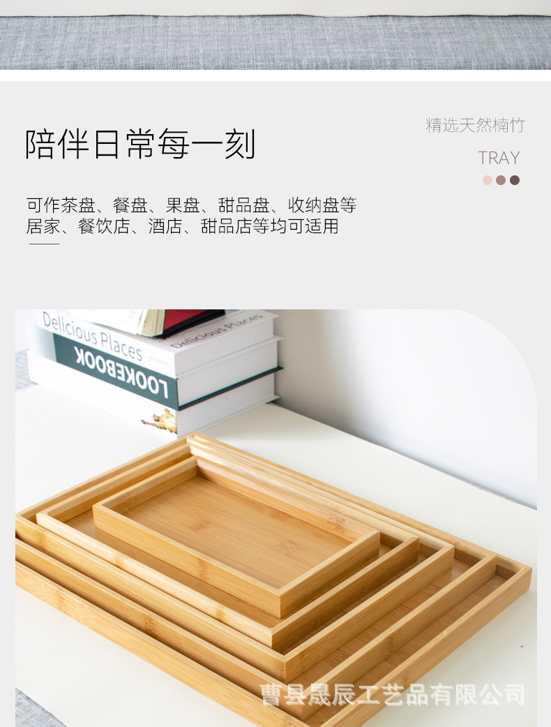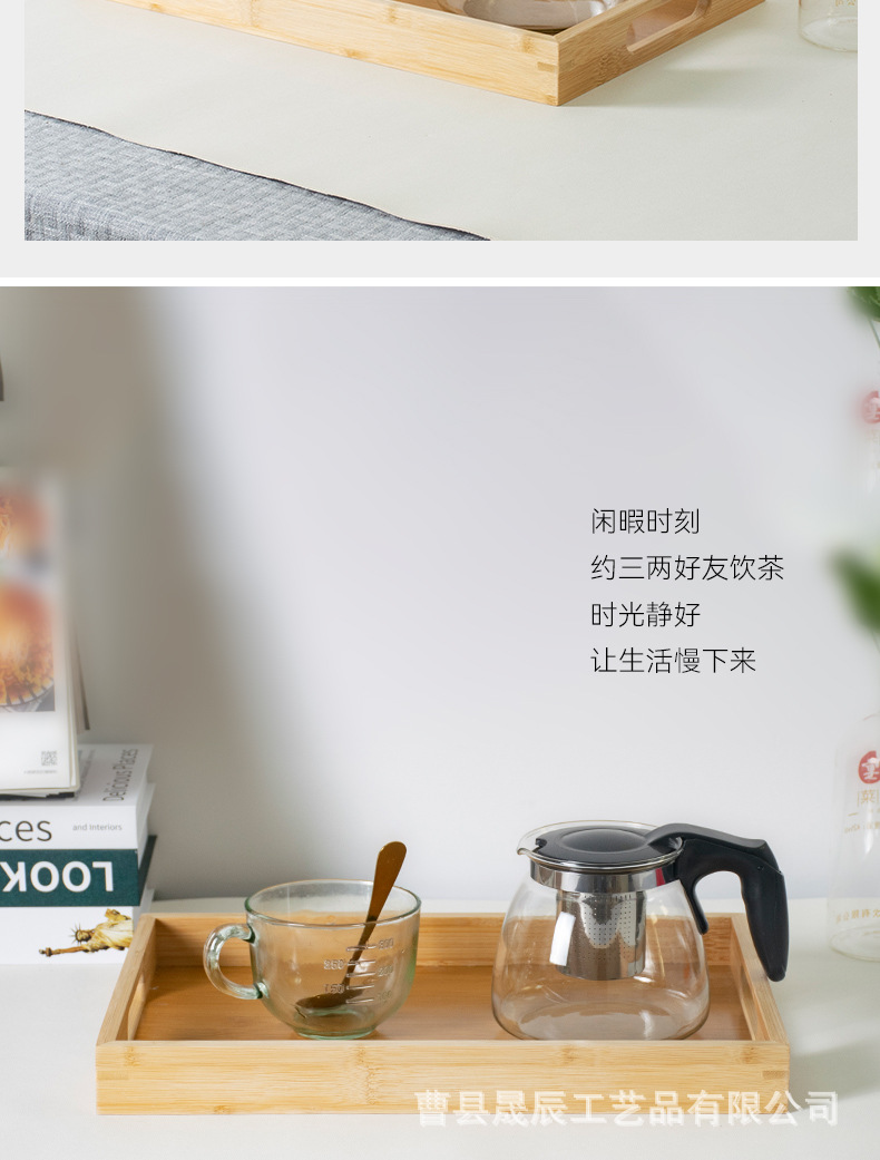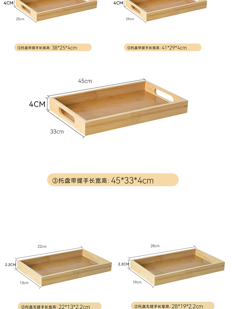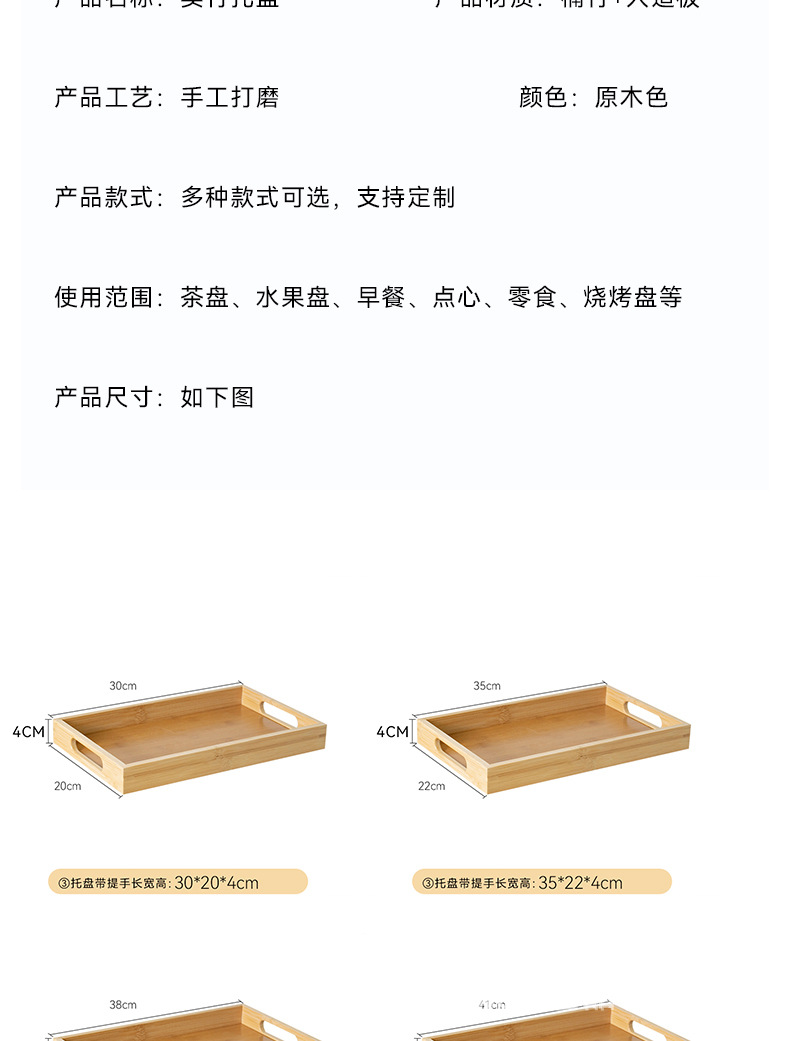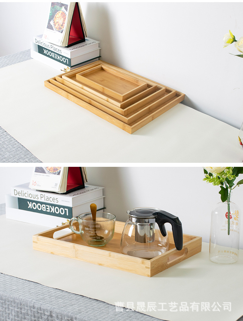 Bandeja rectangular de bambú con doble asa para tazas, té, barbacoa, snacks, pasteles gourmet, postres, ecológica.