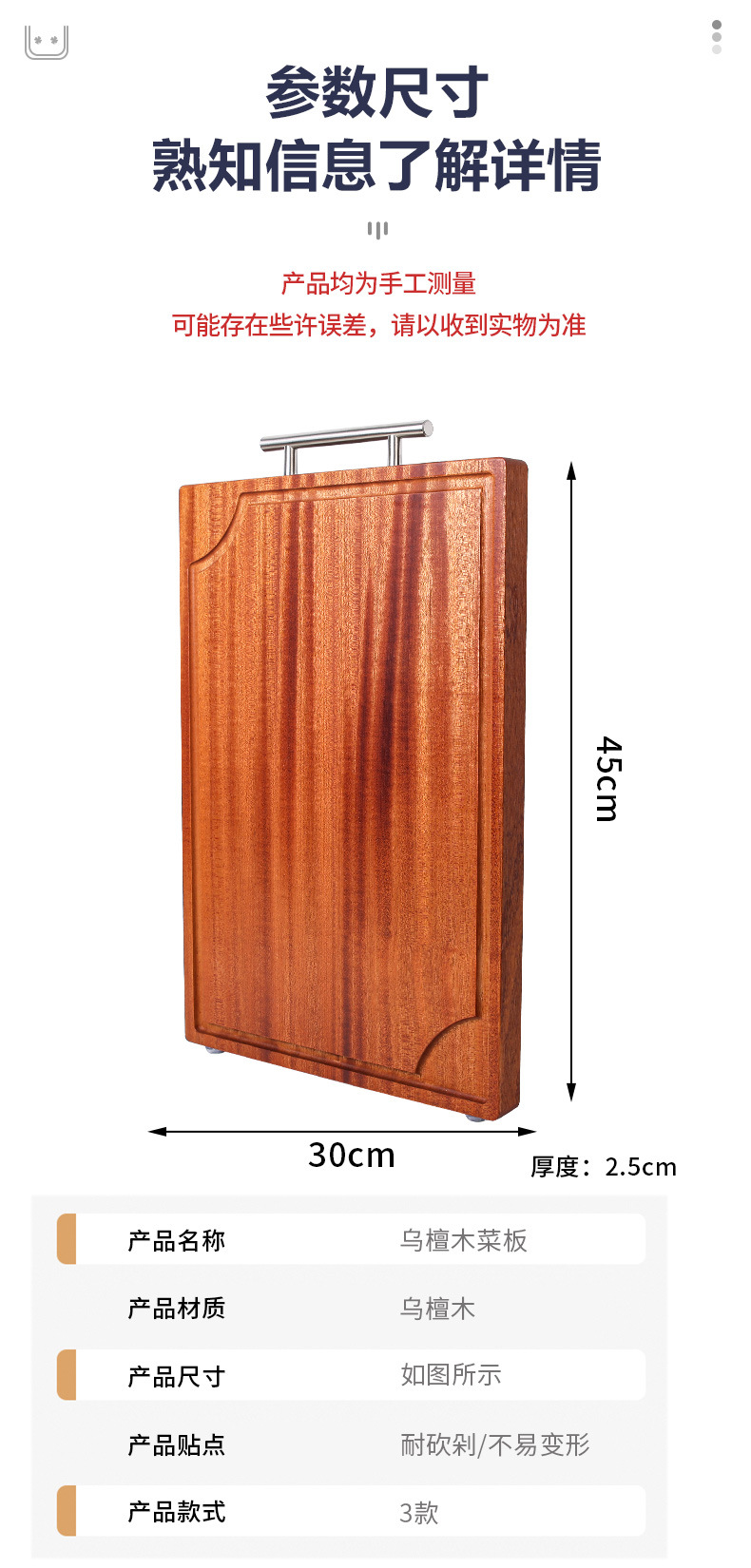 Tabla de corte de ébano hogar espesado madera maciza tabla de corte de madera entera tabla de corte de doble cara disponible al por mayor hueso de cortar fideos rodantes