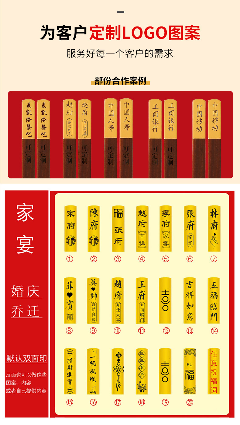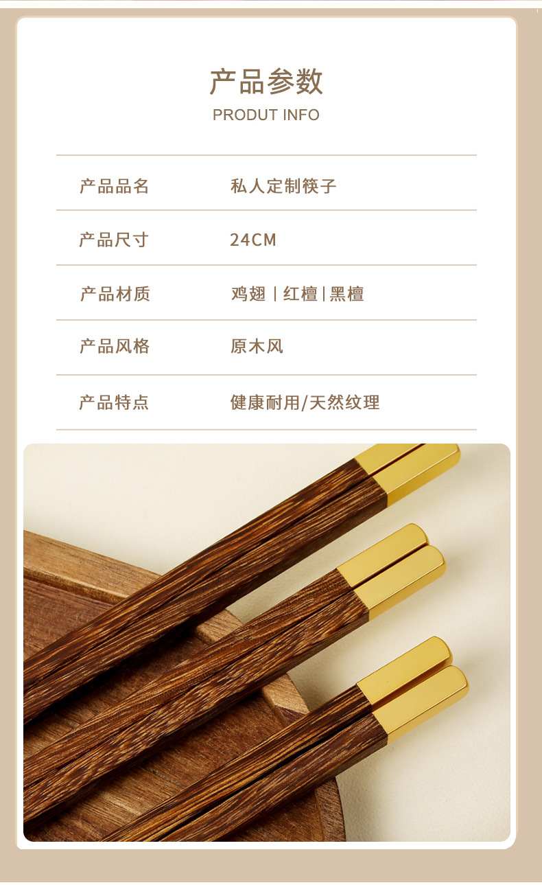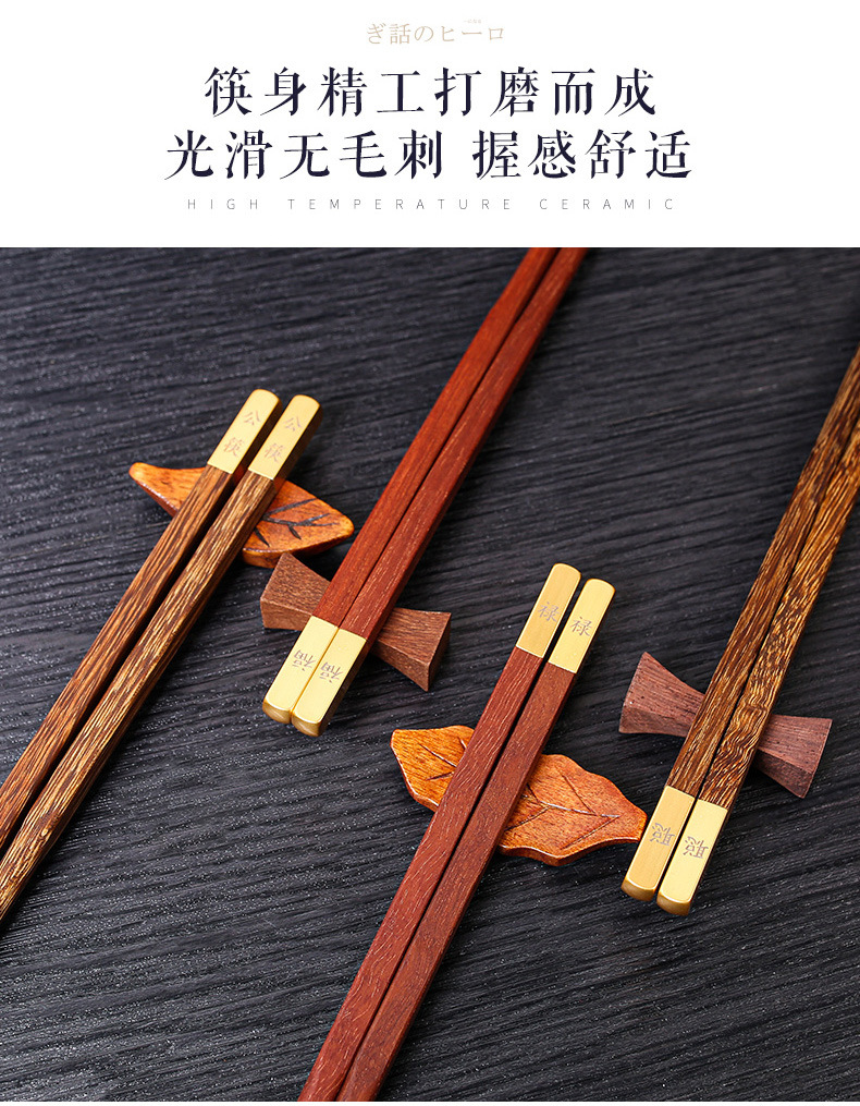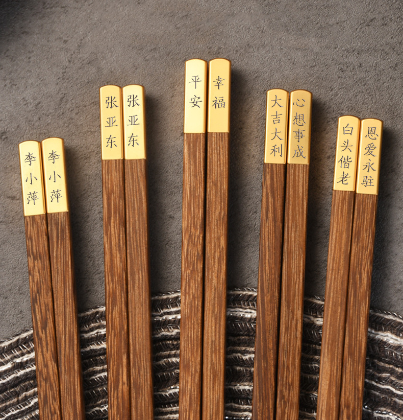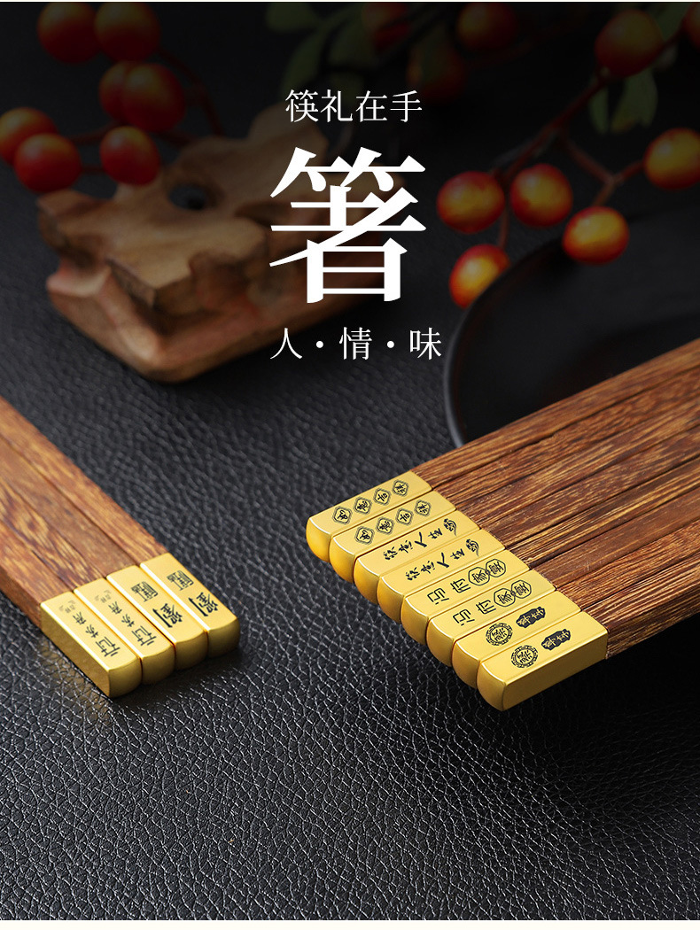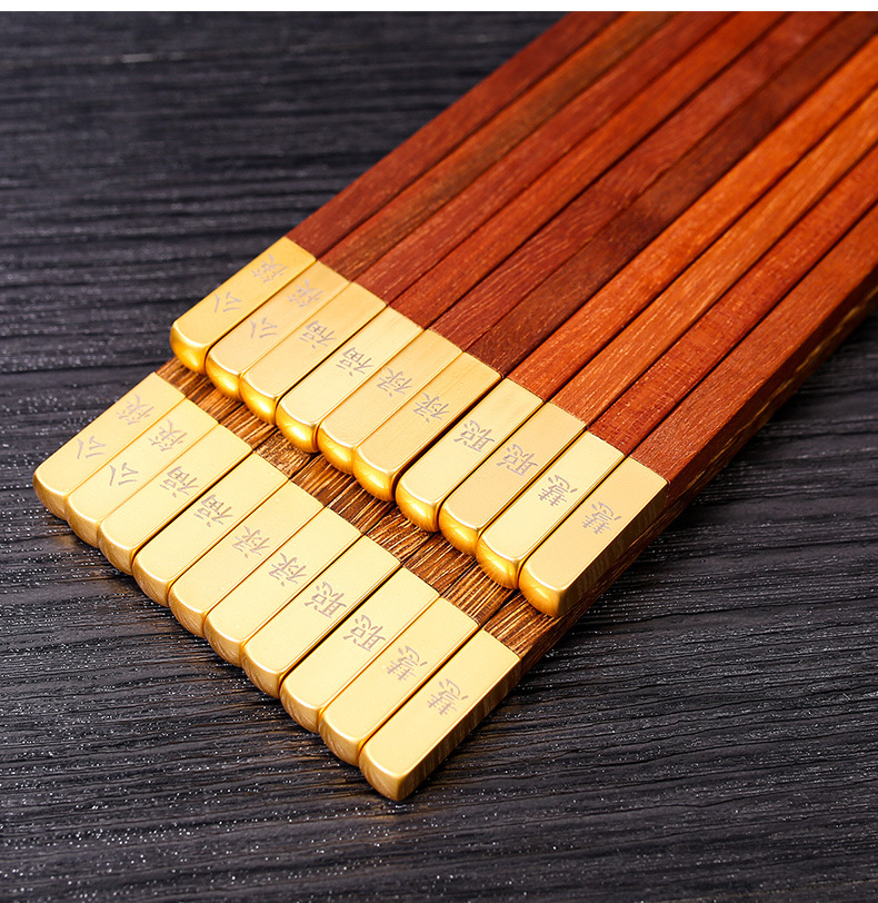 Ala de pollo Madera Niebla palillos de oro cabeza de cobre 25CM cabeza de metal letras de madera maciza palillos de sándalo rojo empresa privada regalo de inauguración de la casa