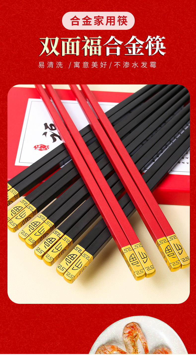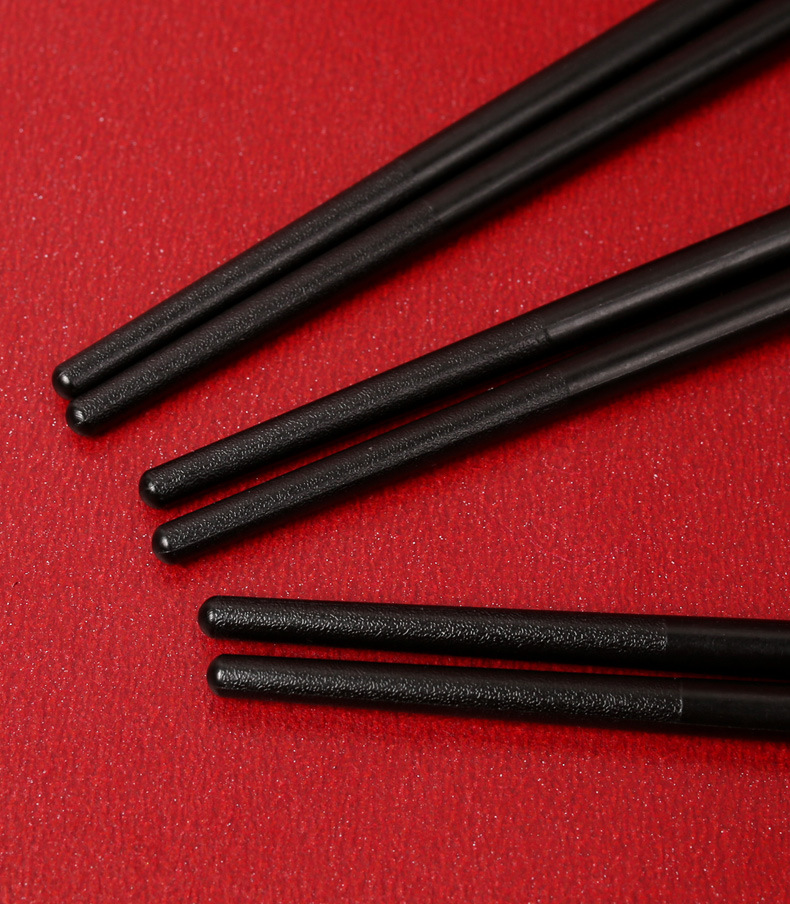 Palillos de aleación al por mayor, negros y rojos, festivos, de plástico PET, de doble cara, antideslizantes, en stock.