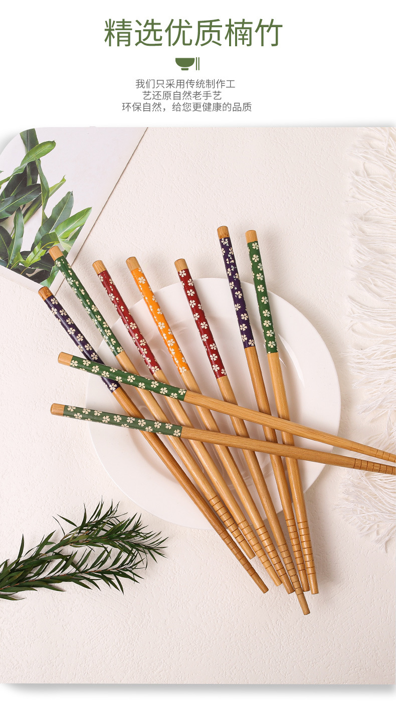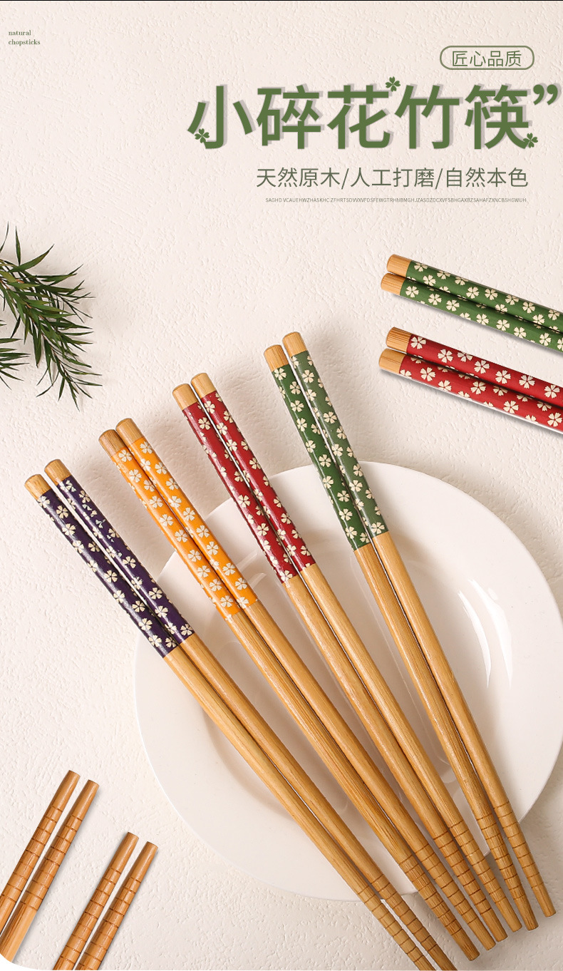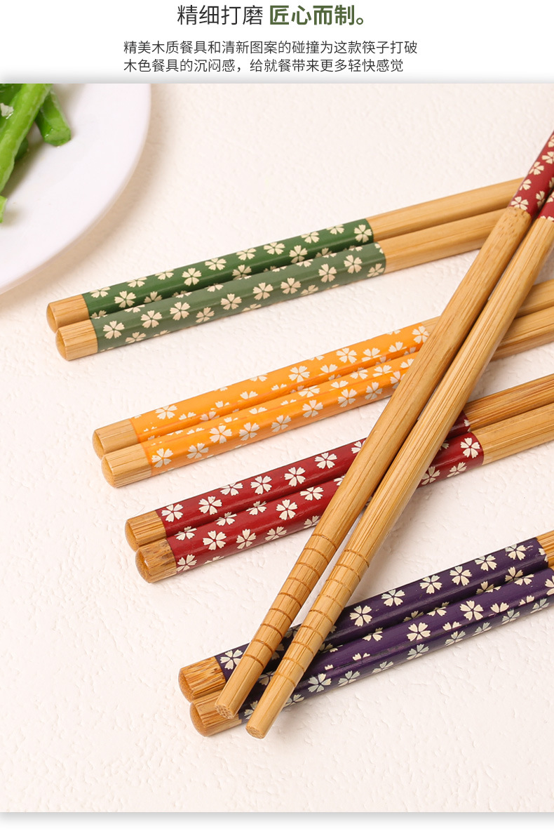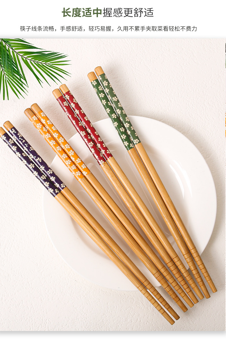 Palillos de bambú de estilo japonés al por mayor 22,5 CM pequeño hilo puntiagudo floral carbonizado palillos en stock puesto grupo compra suministro