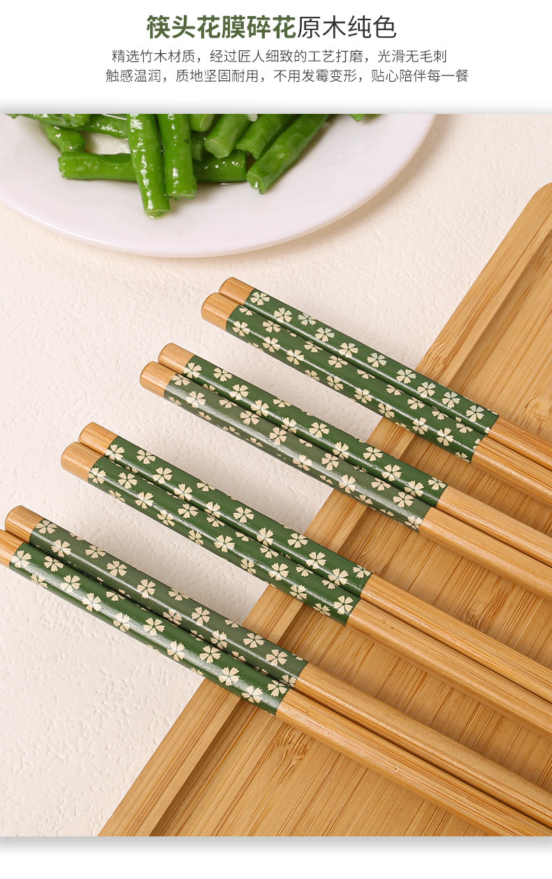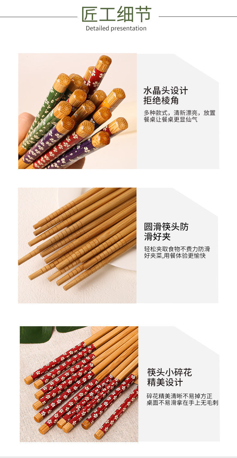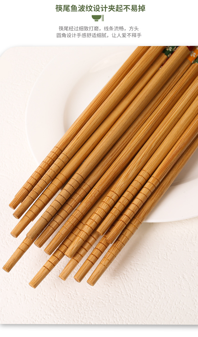 Palillos de bambú de estilo japonés al por mayor 22,5 CM pequeño hilo puntiagudo floral carbonizado palillos en stock puesto grupo compra suministro