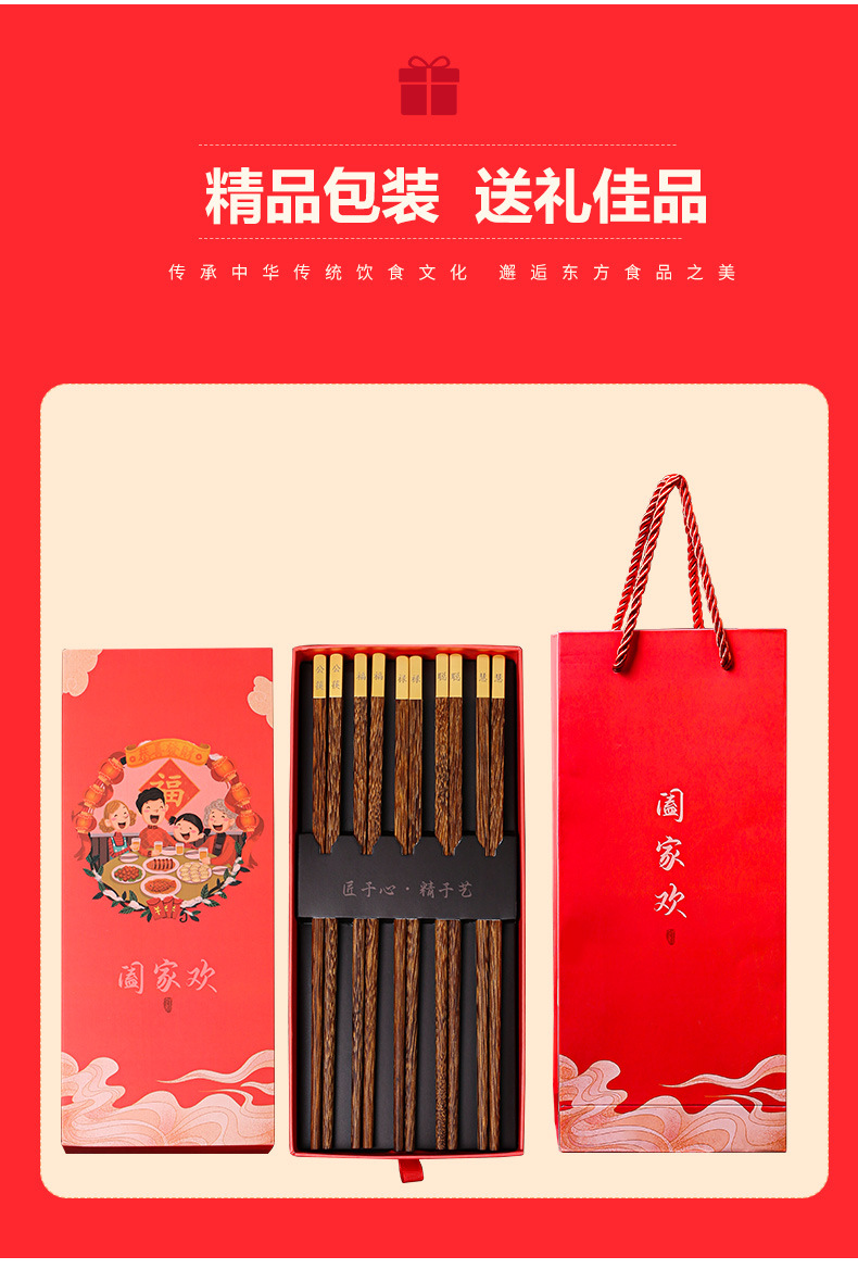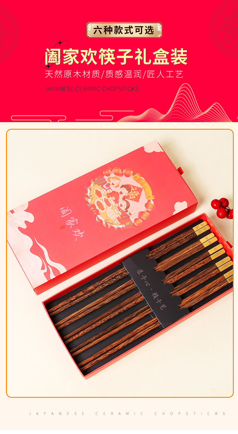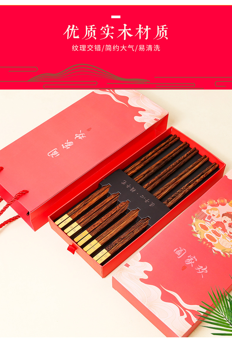 2024 dragón año apertura palillos rojos regalo de mano palillos de madera maciza familia feliz regalo traje conjunto LOGO en stock al por mayor