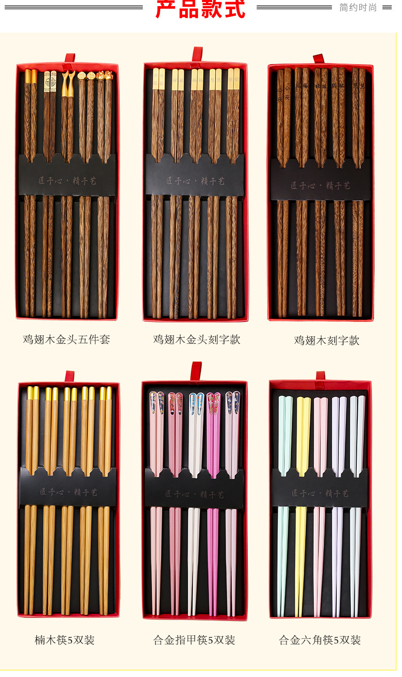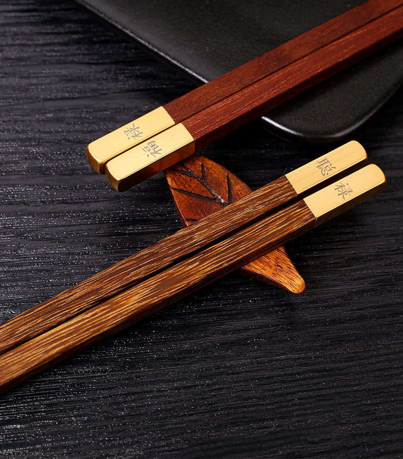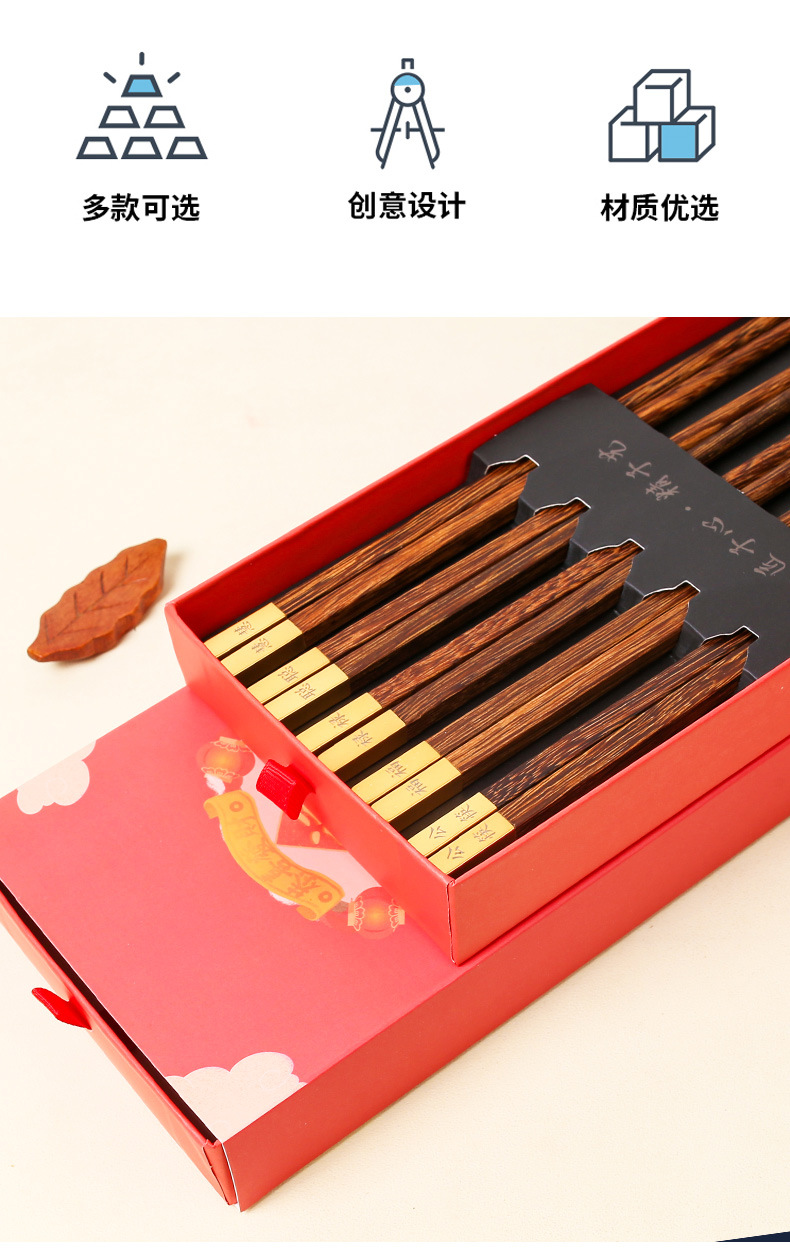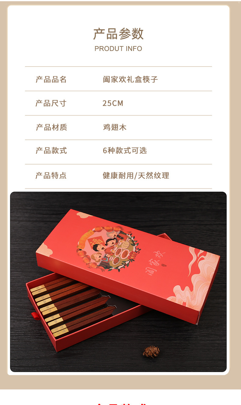 2024 dragón año apertura palillos rojos regalo de mano palillos de madera maciza familia feliz regalo traje conjunto LOGO en stock al por mayor