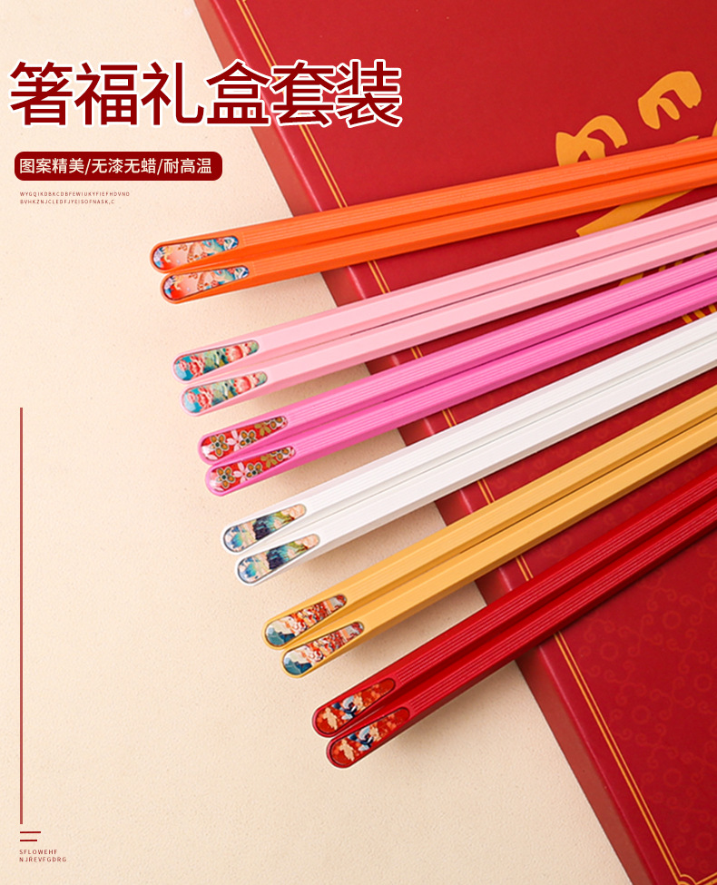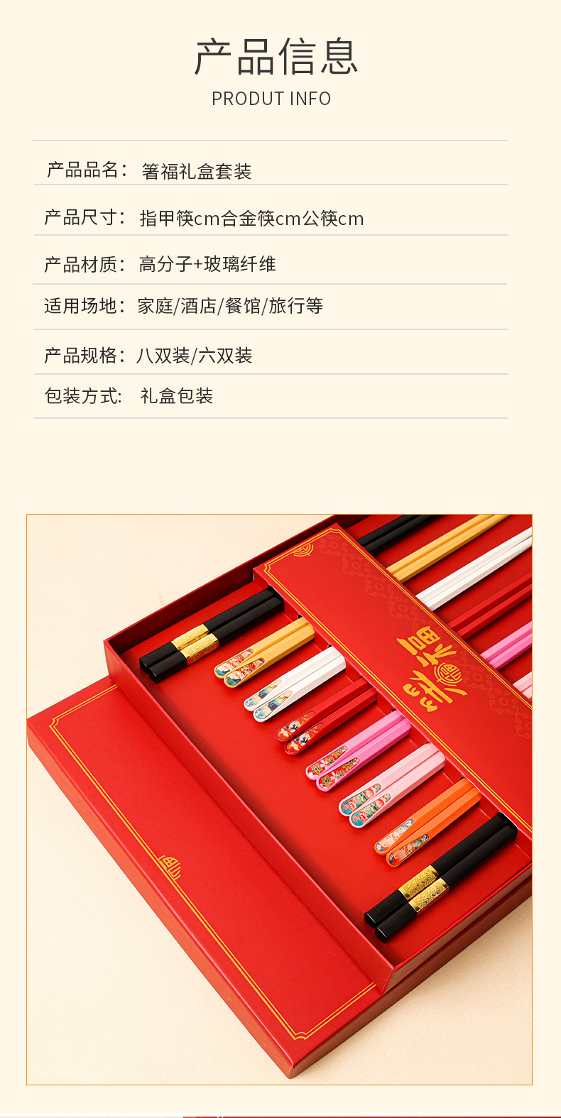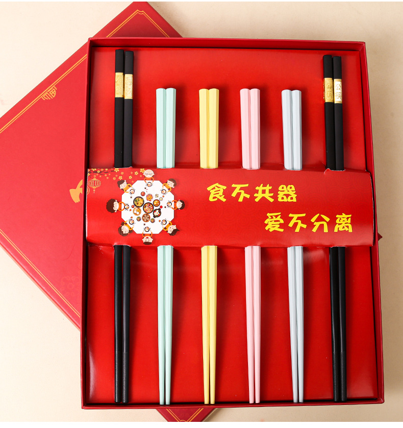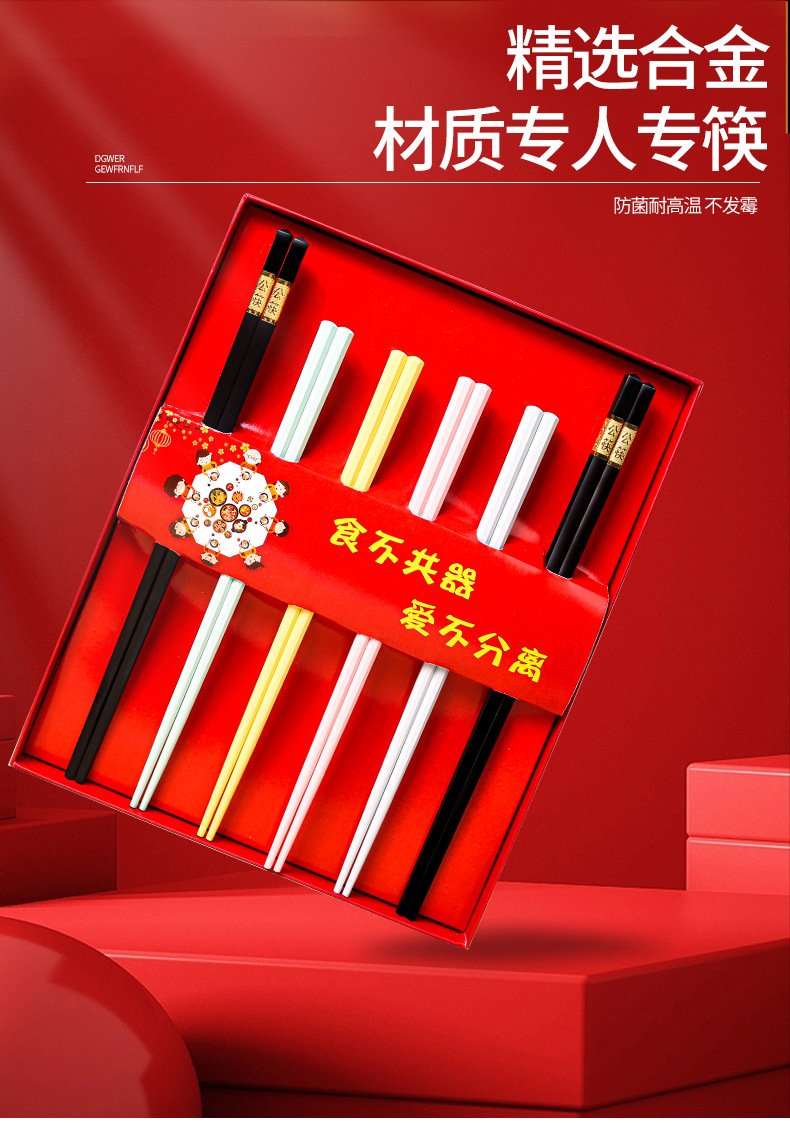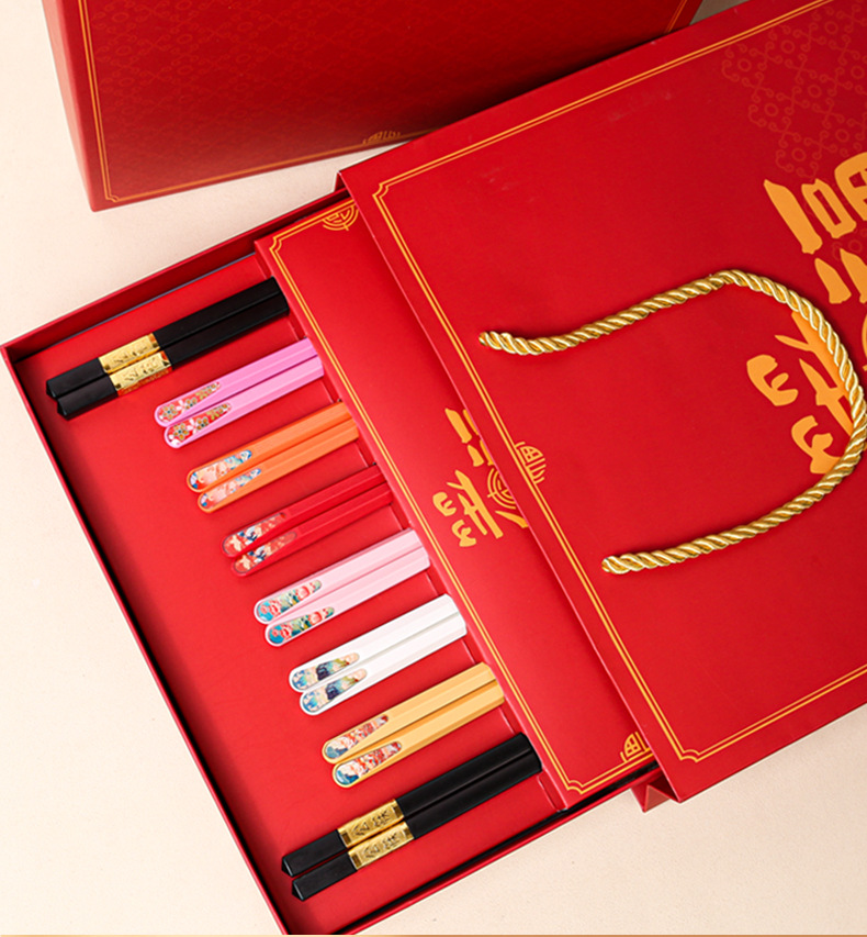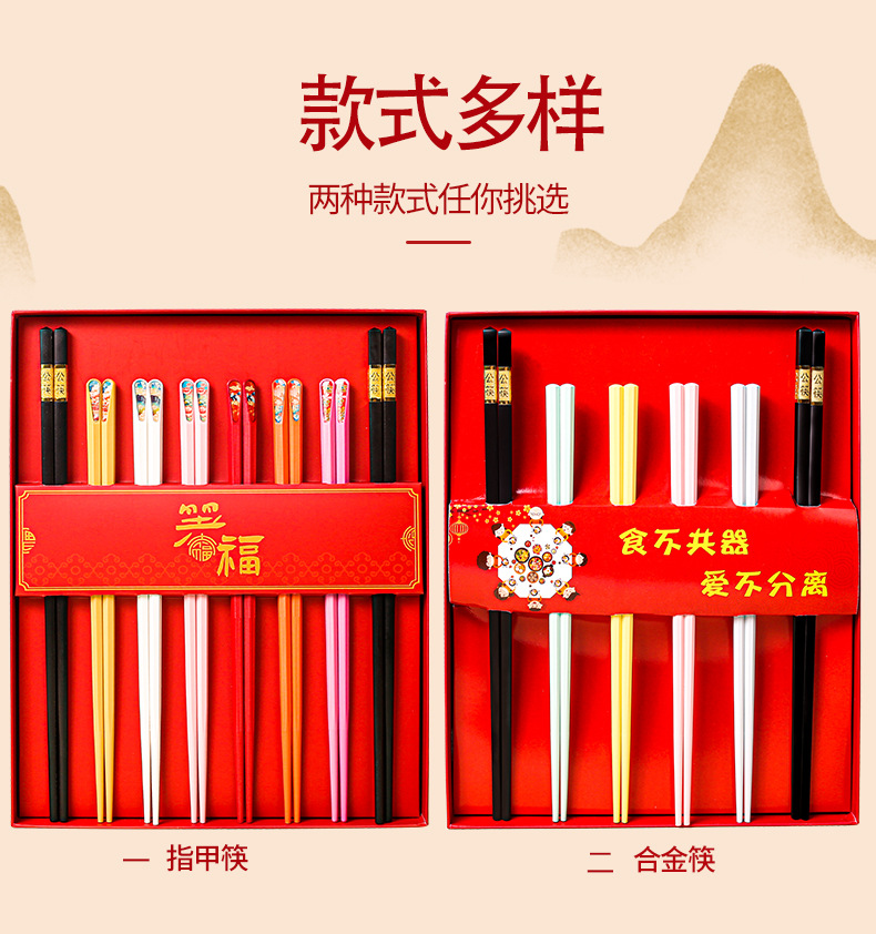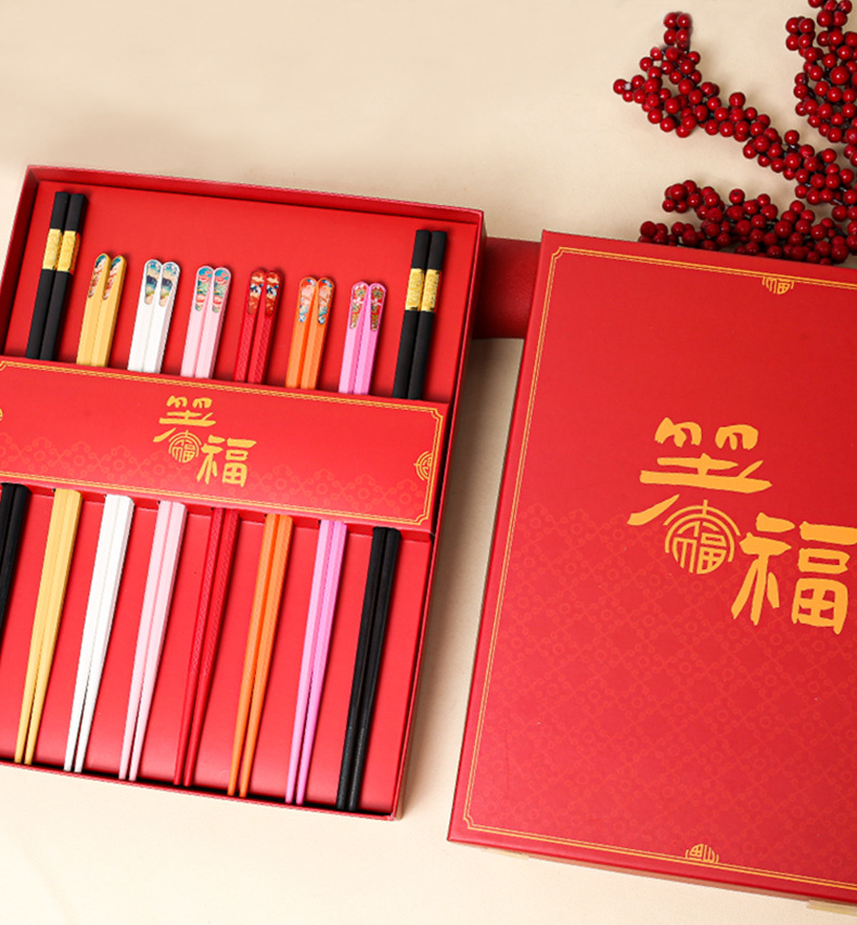 Nueva apertura rojo creativo palillos regalo traje nacional moda rojo ocho pares de palillos de aleación regalo en stock venta al por mayor