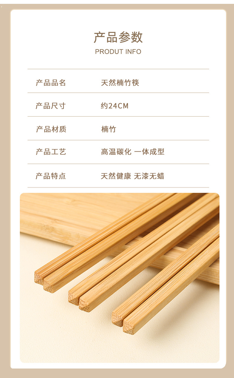 Palillos de bambú al por mayor Plaza de la moda nacional palillos chinos por encima y por debajo de Ronda chino tradicional Cabeza Cuadrada restaurante vajilla palillos