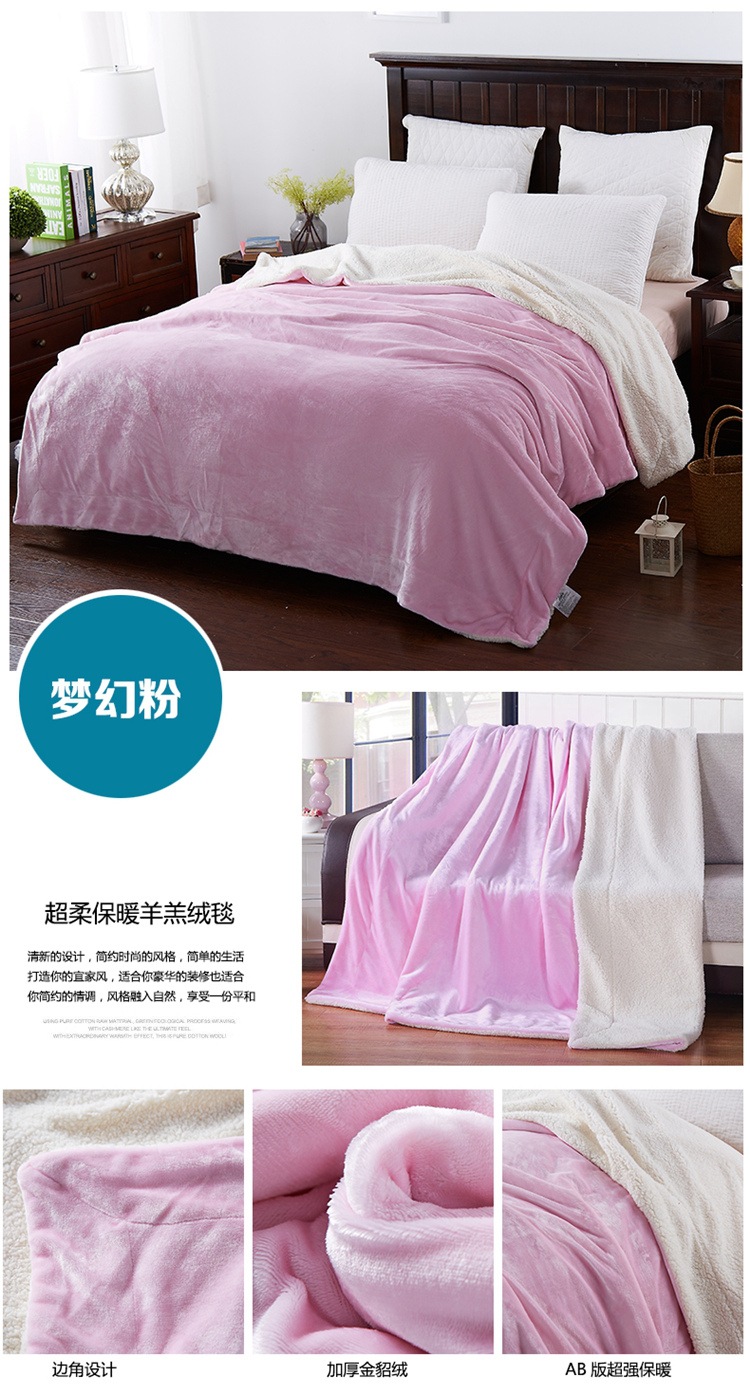 Directo de fábrica de doble capa de lana de cordero manta de franela engrosada coral polar manta de color sólido impreso LOGO al por mayor