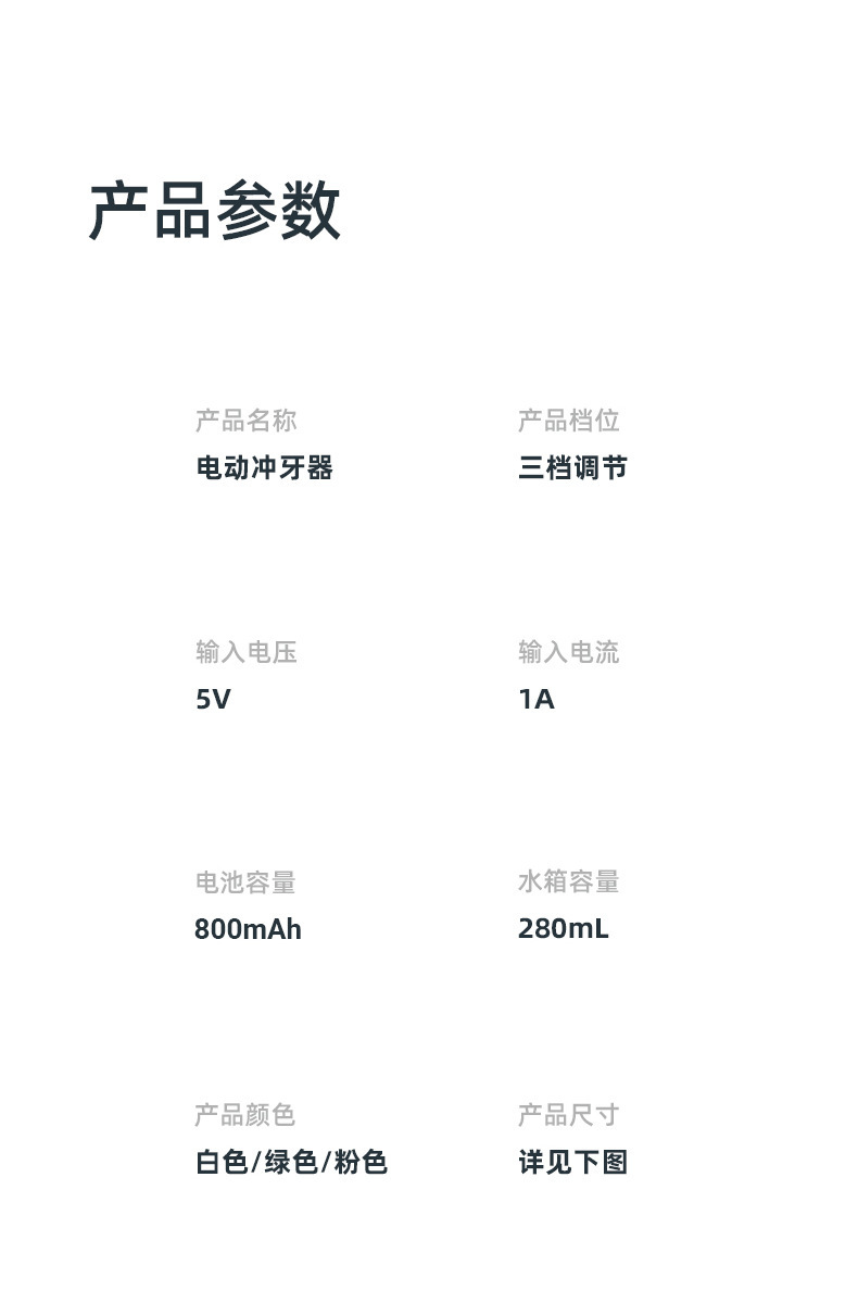 | Colores | Blanco-Batería 800mAh (dos boquillas),Verde-Batería 800mAh (dos boquillas),Rosa-Batería 800mAh (dos boquillas),Blanco-Batería 800mAh (cinco boquillas),Verde-Batería 800mAh (cinco boquillas),Rosa-Batería 800mAh (cinco boquillas) |