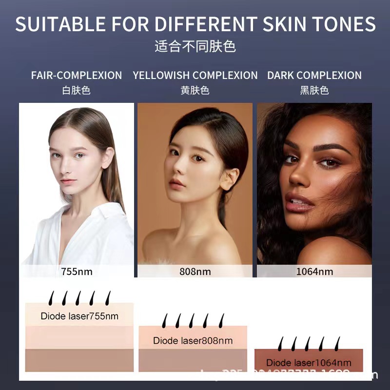 Soprano Instrumento de belleza de titanio Instrumento de rejuvenecimiento de diodos de cuatro bandas Máquina de limpieza de cejas