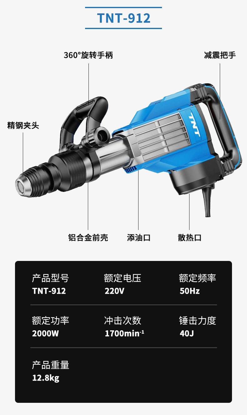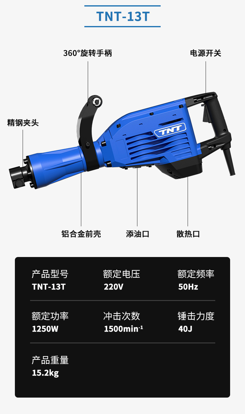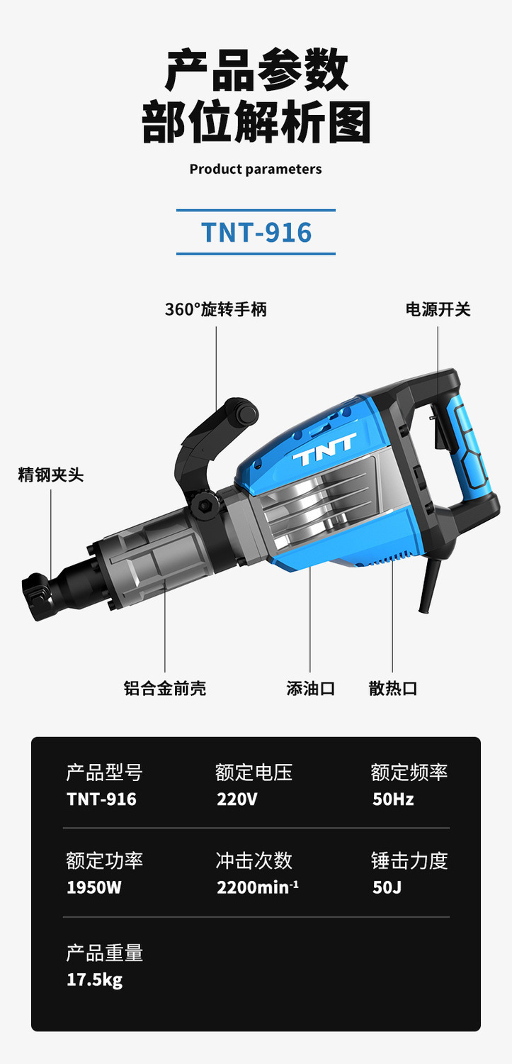 Antimonio En Antimonio TNT13T15T16T Pico eléctrico Martillo eléctrico Alta potencia Ingeniería de carreteras de hormigón de grado industrial pesado Demolición de muros