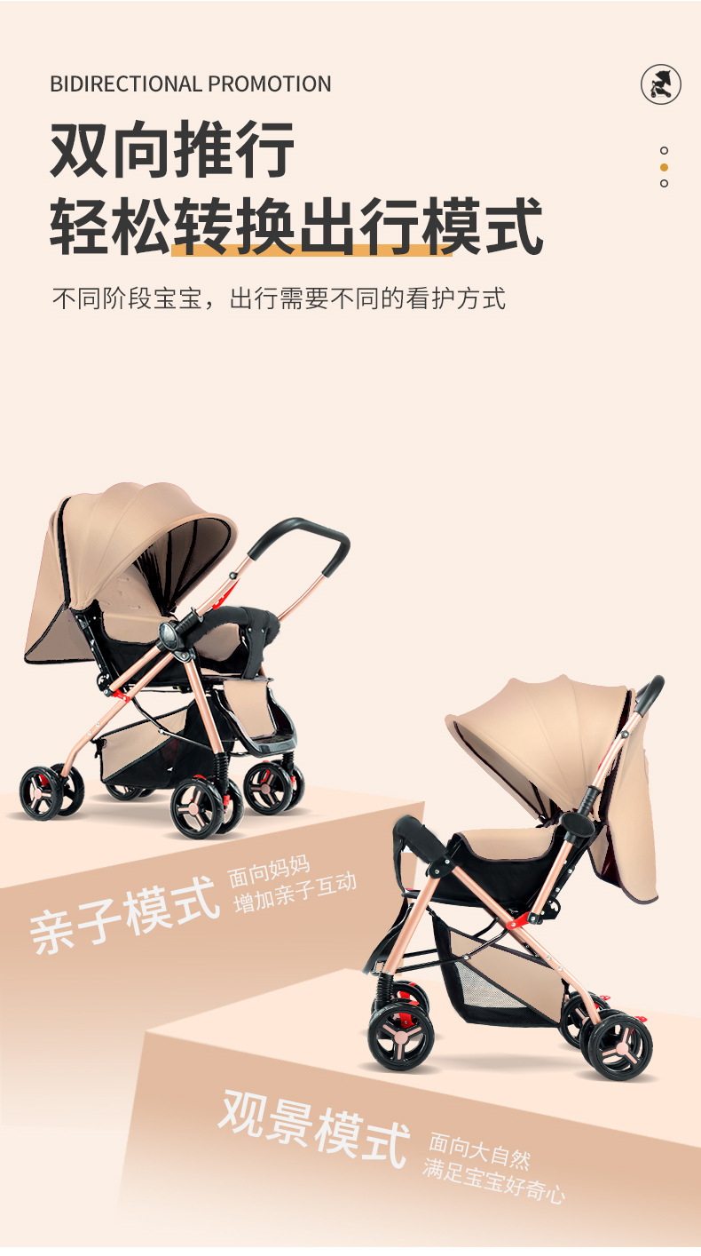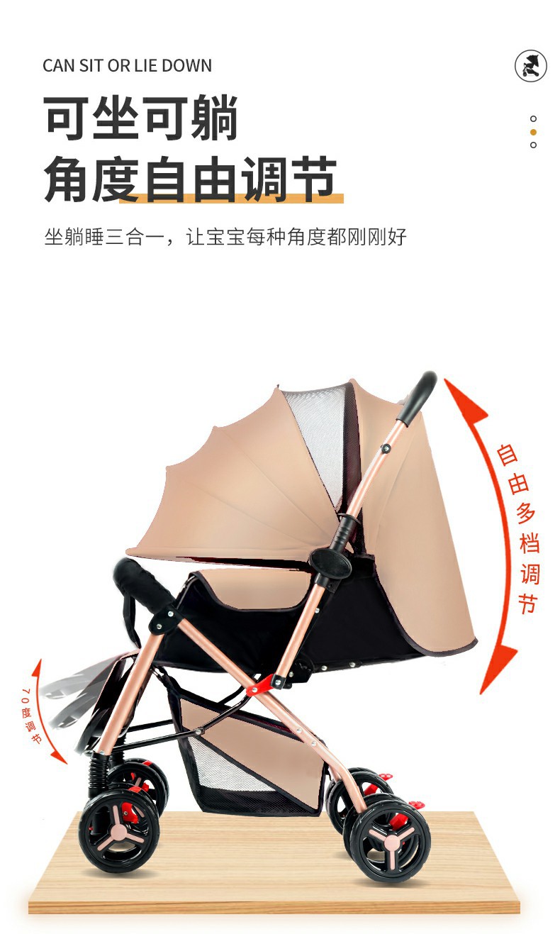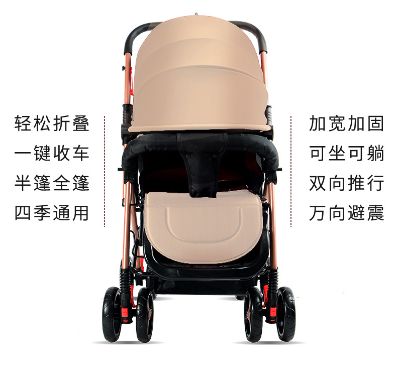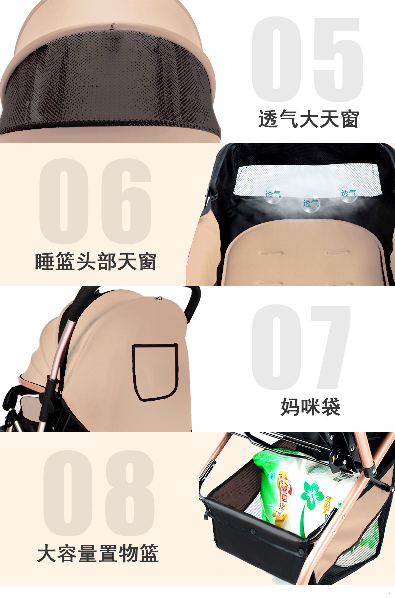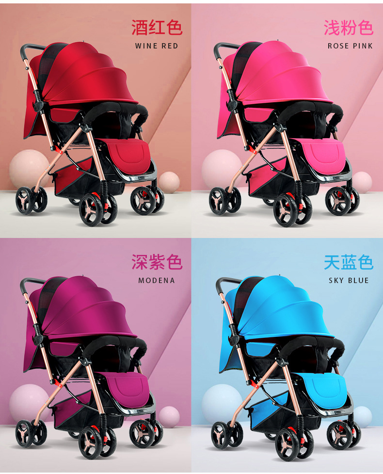 El cochecito de bebé se puede sentarse, mentir, plegable, amortiguador reversible, canasta para dormir grande, cochecito ligero de cuatro ruedas para bebés para niños