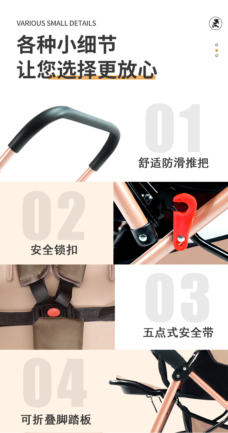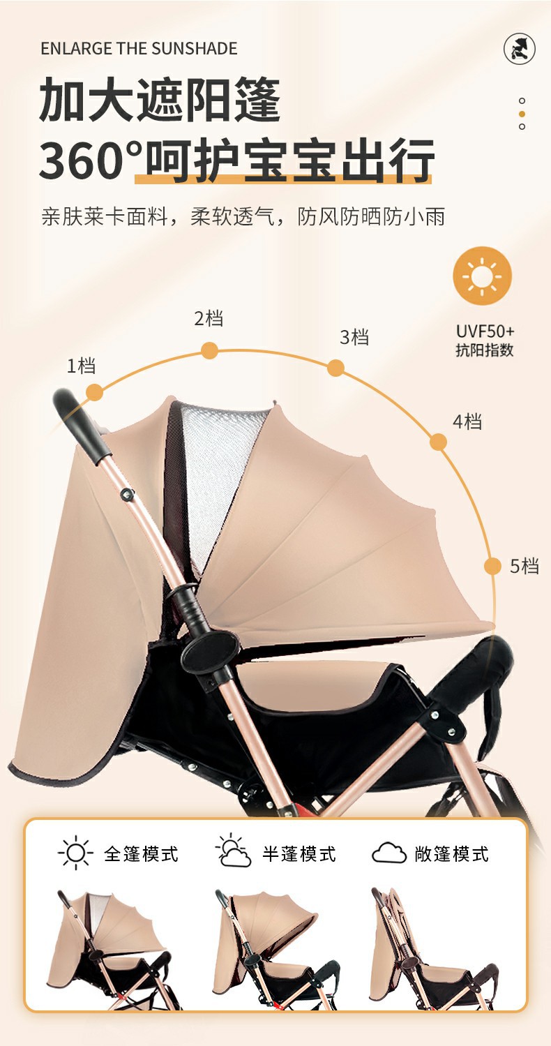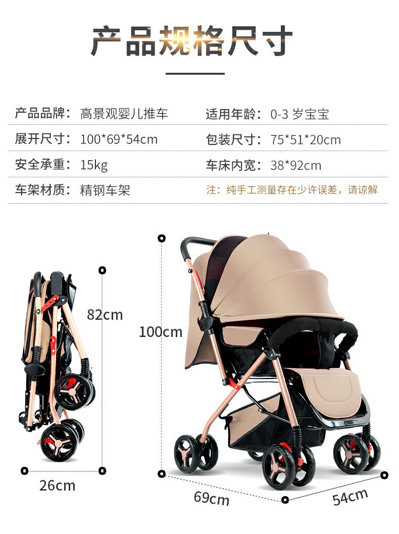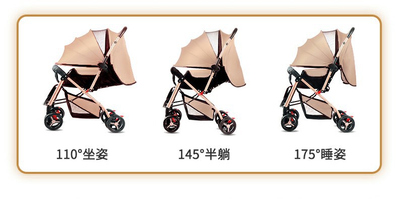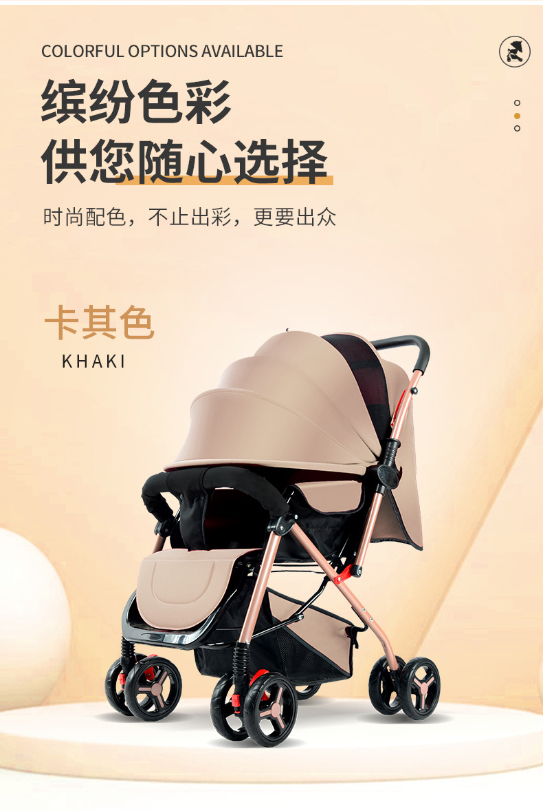 El cochecito de bebé se puede sentarse, mentir, plegable, amortiguador reversible, canasta para dormir grande, cochecito ligero de cuatro ruedas para bebés para niños