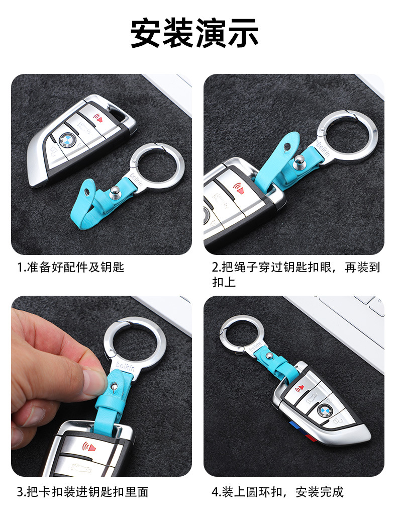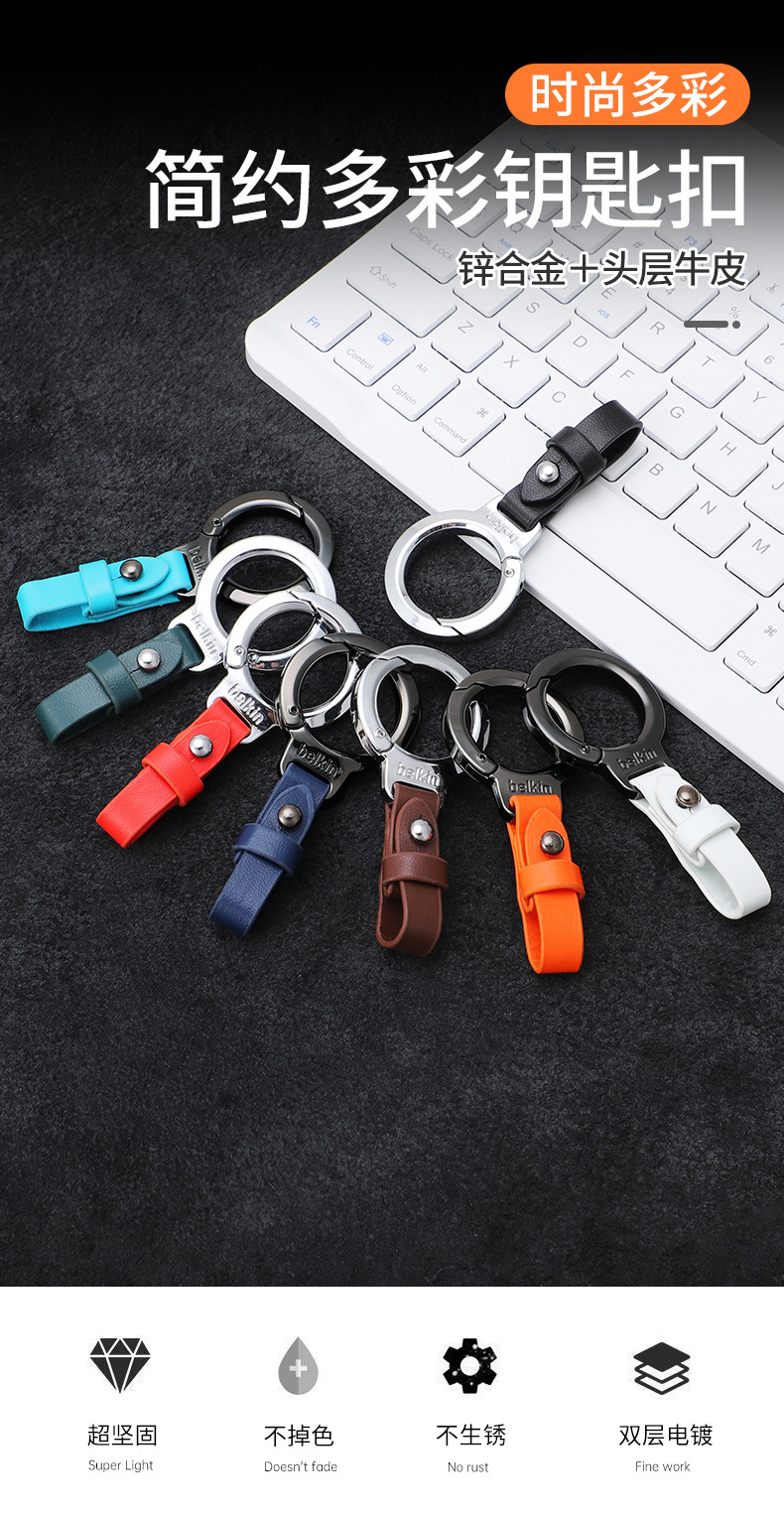 Llavero de coche de hombre simple llavero de cuero de gama alta personalizado anti-perdido clave colgante par adornos de metal