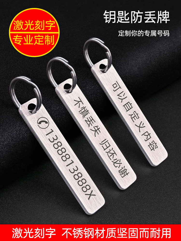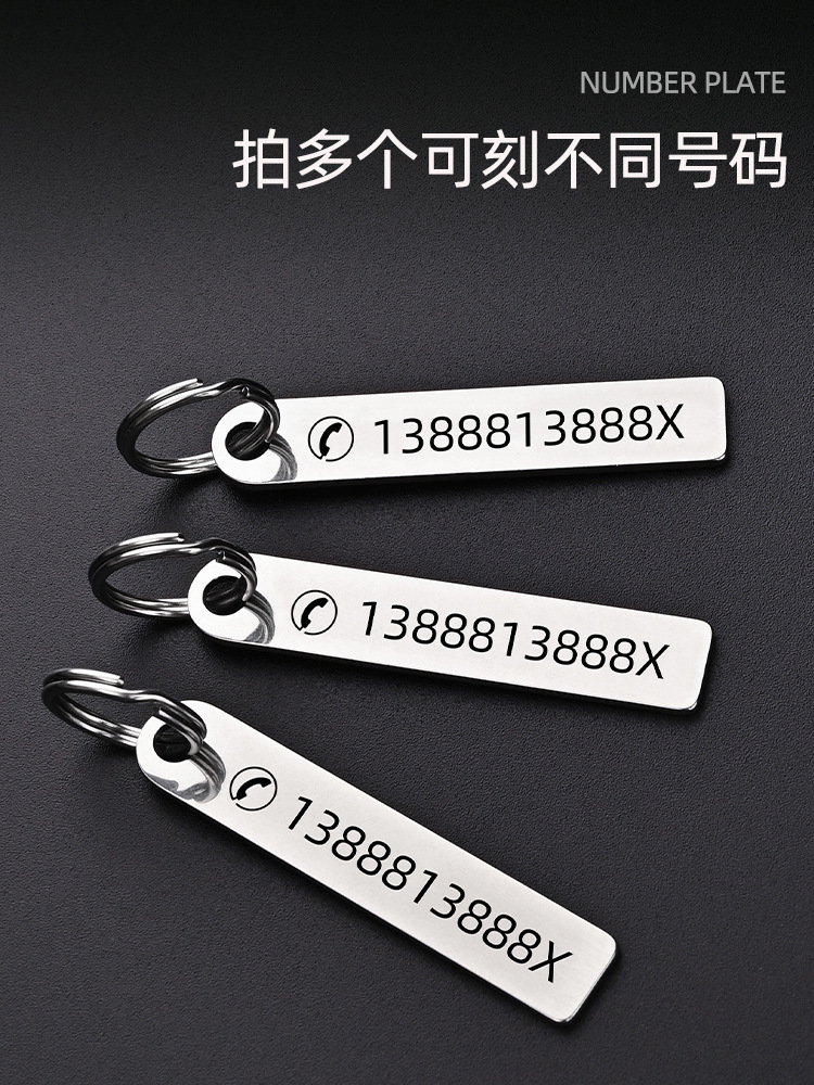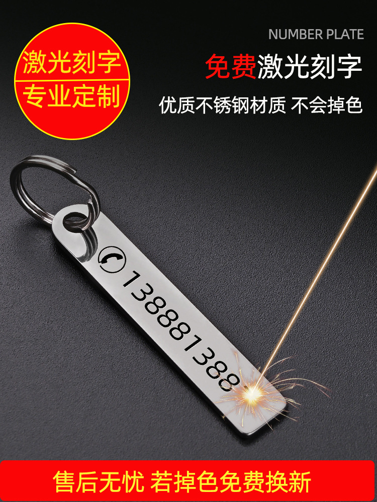 Letras láser anti-número perdido placa coche llavero Teléfono hombres y mujeres anillo cadena colgante adornos de acero inoxidable
