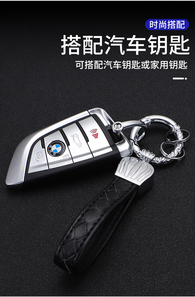 Productos transfronterizos Llavero de coche Corona Llavero de metal Material de aleación de zinc Cuerda de cuero duradera de alta gama Llavero