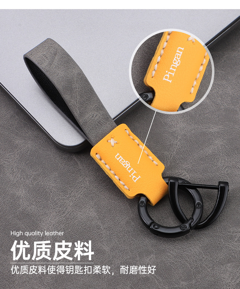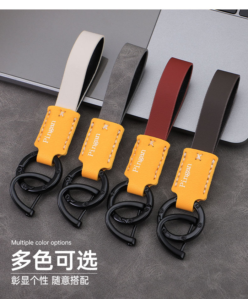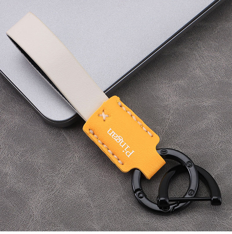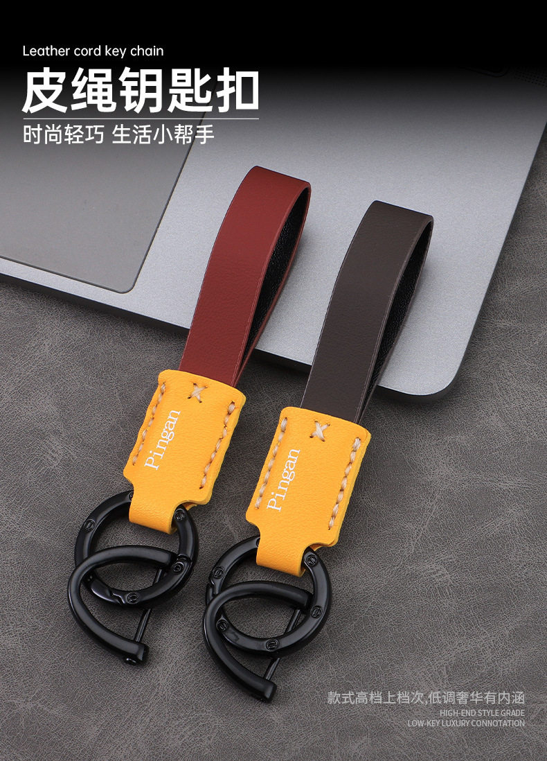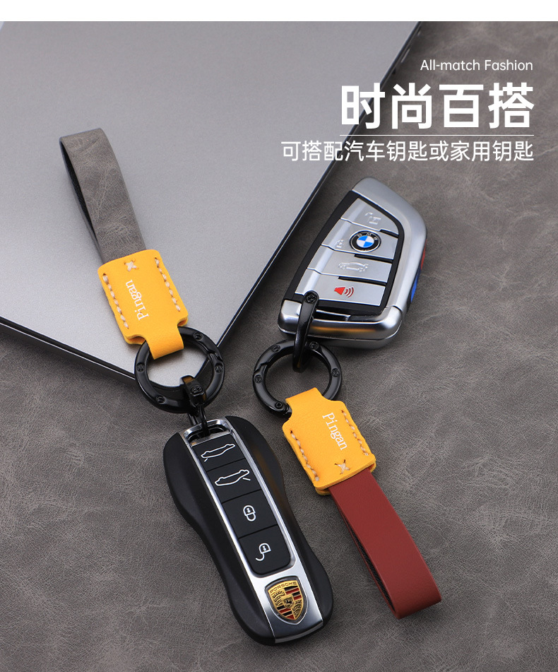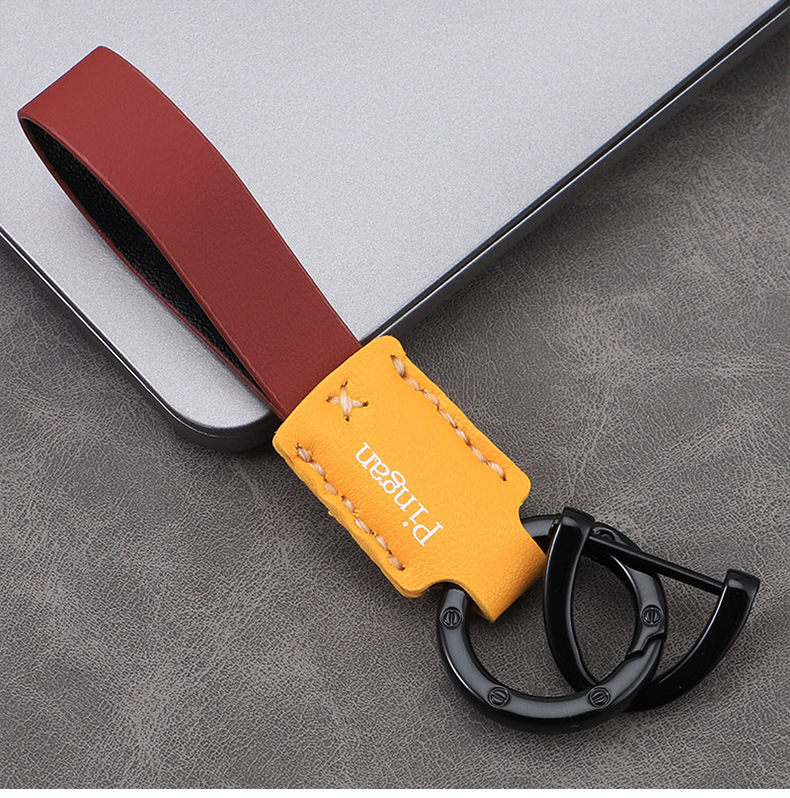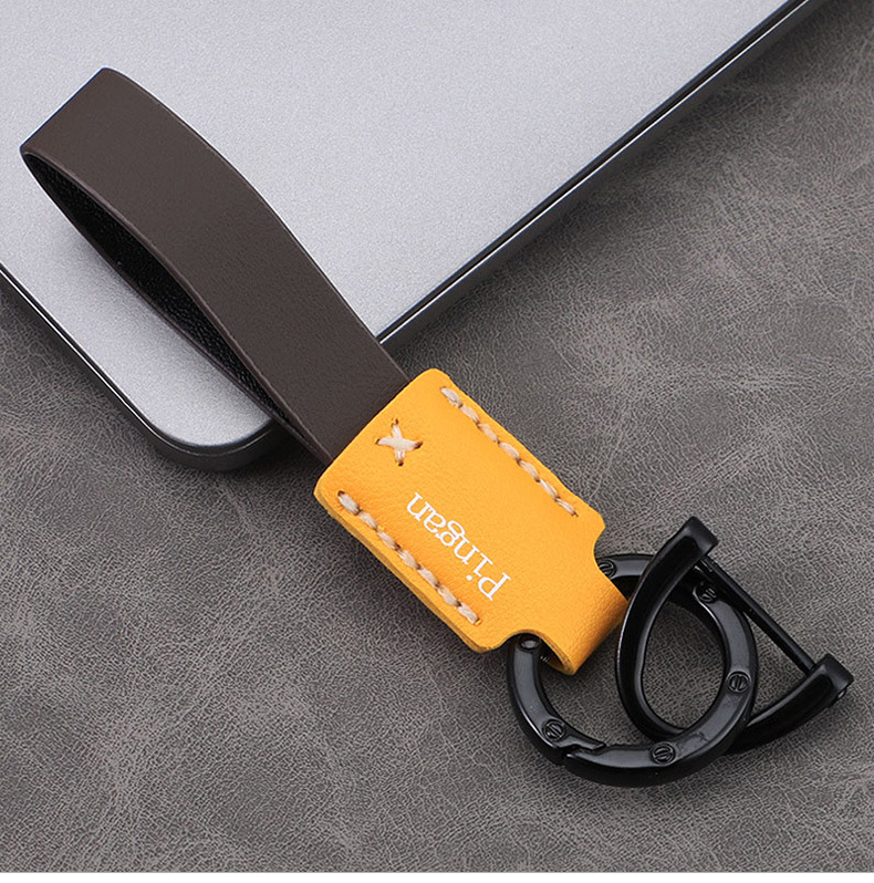 Llavero de coche con hebilla D para coche, llavero de cuero con cuerda de mano, colgante de llave de negocio simple personalizado, colgante multicolor