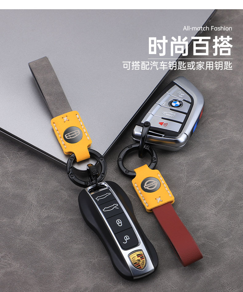Llavero de coche láser láser cerradura de cuero de alta gama hebilla colgante de llave cuero duradero colgante de llavero de alta temperatura