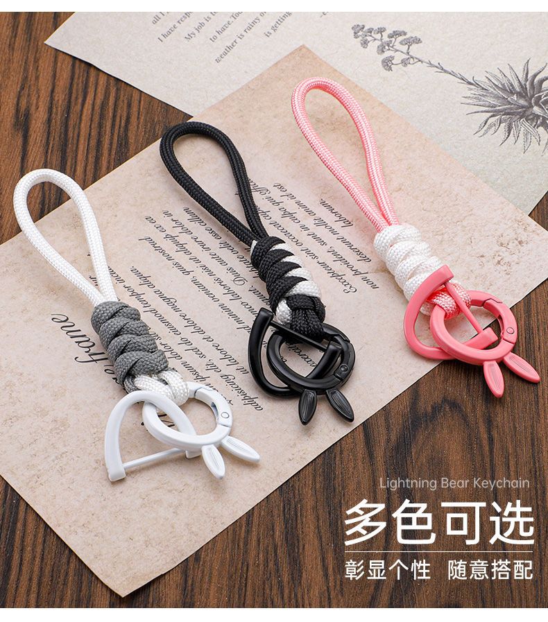 | Colores | Llavero de cuerda tejida a mano blanca,Llavero de cuerda tejido a mano negro,Llavero de cuerda tejida a mano rosa |