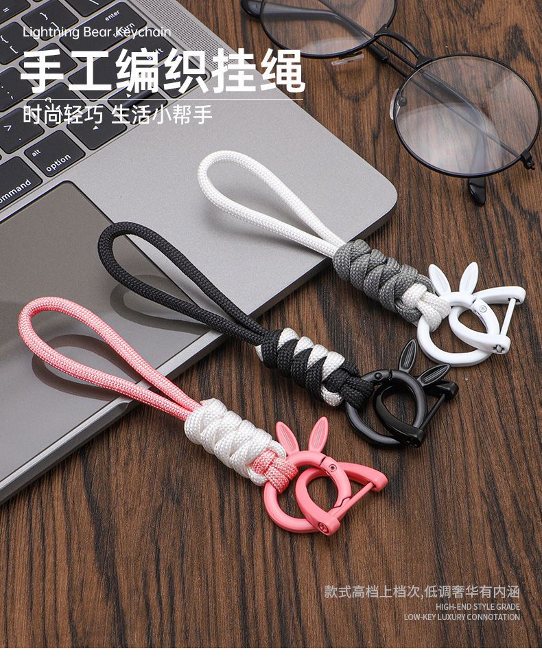 Lindo cordón de conejo llavero anillo colgante niña coche colgante de alto valor ins nicho