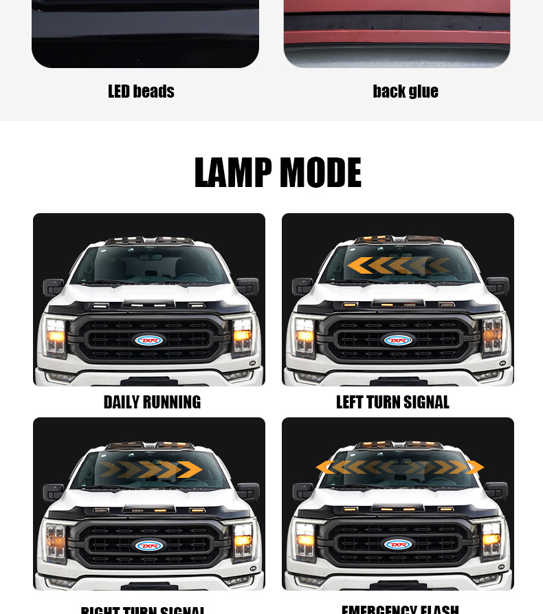 | Especificaciones | F-150 Raptor 2021: luces de techo todoterreno especiales actuales 1 pieza,F-150 Raptor 2021-Luz de techo especial de la ciudad actual 1 pieza |
