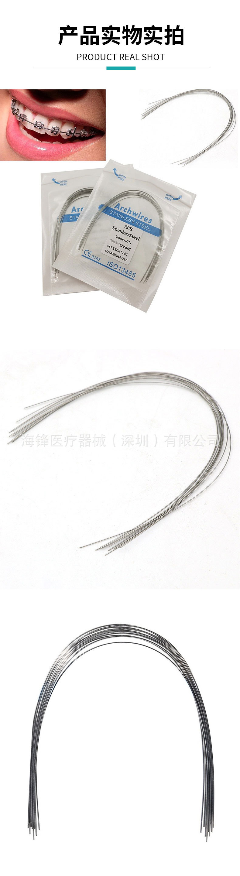 Ortodoncia dental Alambre de arco de acero inoxidable Alambre redondo súper elástico Alambre cuadrado Alambre preformado Alambre de ortodoncia Ovalos 10 paquetes
