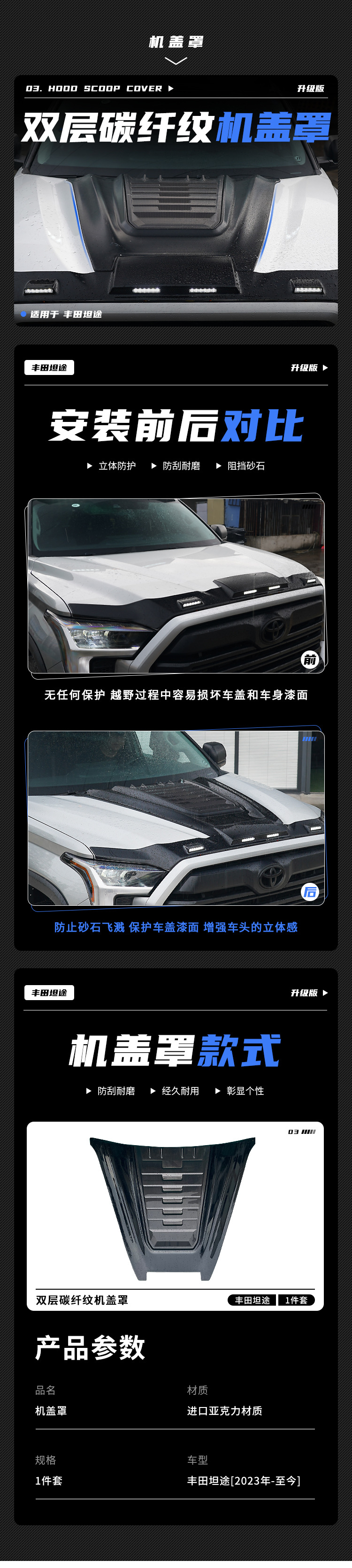 | Especificaciones | [Tundra de Tantu] 2023-reflector de techo actual (negro mate 1 paquete),[Tantu tundra] 2023-actual reflector de techo (patrón de fibra de carbono 1 pieza),[Tantu tundra] 2023-bloque de arenisca actual con lente (1 paquete),[Tantu tundra] 2023-actual de doble capa de fibra de carbono de grano cubierta de la máquina (1 pieza),[Tantu tundra] 2023-Escudo de lluvia engrosado ensanchado actual (4 piezas),[Tundra de Tantu] 2023-Escudo de lluvia original de pieza media actual (4 piezas),[Tantu tundra] 2007-2022 reflector de techo (negro mate 1 pieza),[Tantu tundra] 2007-2022 reflector de techo (patrón de fibra de carbono 1 pieza),[Tantu tundra] 2014-2022 bloque de arena y piedra con lámpara streamer (1 paquete),[Tantu tundra] 2007-2022 Escudo de lluvia de pieza media original (4 piezas),[Tundra de Tantu] 2007-2022 ensanchó el escudo de lluvia engrosado (4 piezas) |