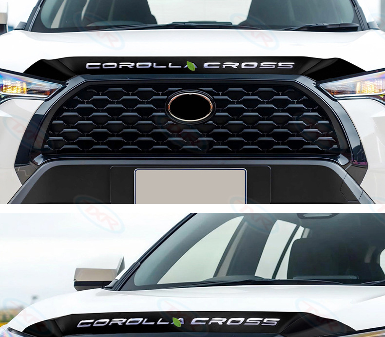 Embellecedor especial del capó para Corolla Cross 2020-presente, con fondo negro y caracteres blancos (1 unidad).