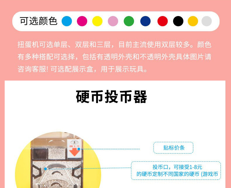 | Especificaciones | Bola pequeña (verde),Pequeño cilindro (rojo),Pequeño cuadrado (amarillo),Máquina cuadrada de 20 pulgadas (roja),Máquina cuadrada de 25 pulgadas (roja),Máquina cuadrada de 30 pulgadas (roja),Máquina espiral de 1 m (amarillo) sin envío gratis,Máquina espiral de 1.3 m (rojo) sin envío gratis,Máquina de gashapon cilíndrica grande (blanca) sin envío gratis,Gacha mixta de 32MM (100 piezas) |