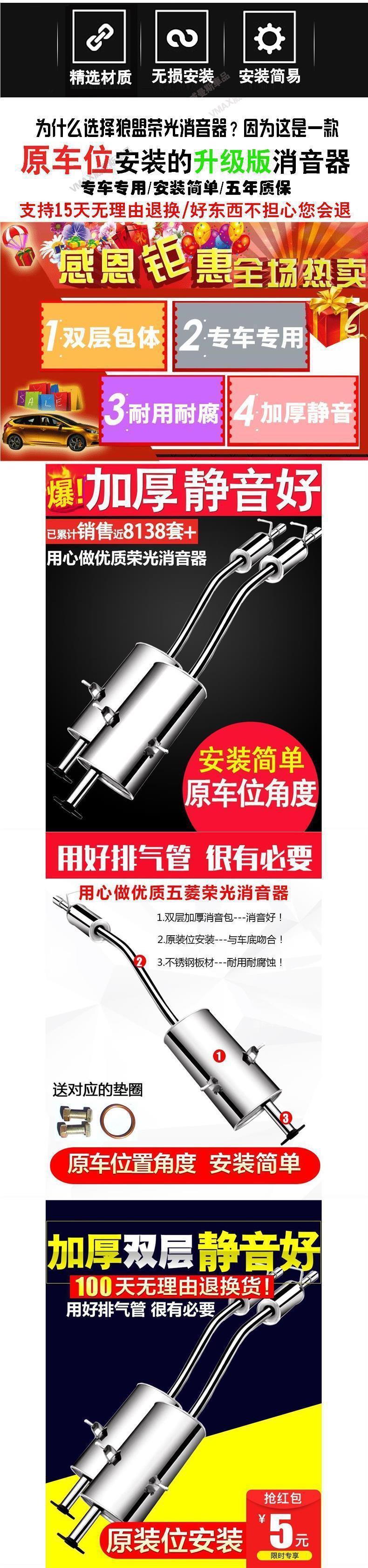 Tubo de escape Wuling Rongguang Sección trasera 6407 Tubo de escape Silenciador de acero inoxidable Silenciador Tarjeta pequeña Sección trasera de la camioneta