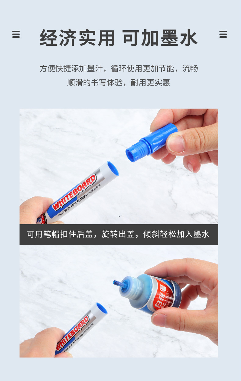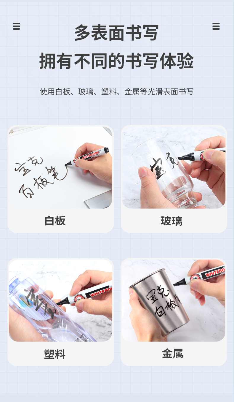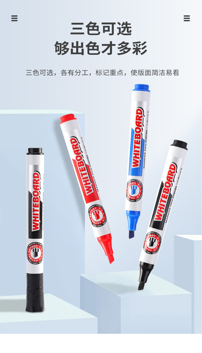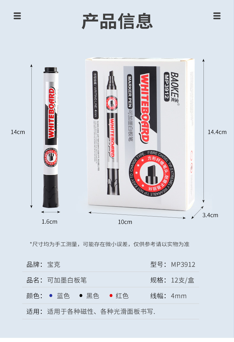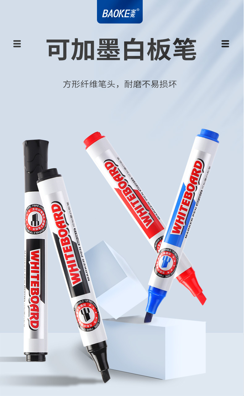 Bolígrafo de pizarra blanca de cabeza cuadrada Baoke MP3912, se puede borrar y agregar tinta, maestro, estudiante, oficina de negocios, bolígrafo de tablero de dibujo negro, rojo y azul