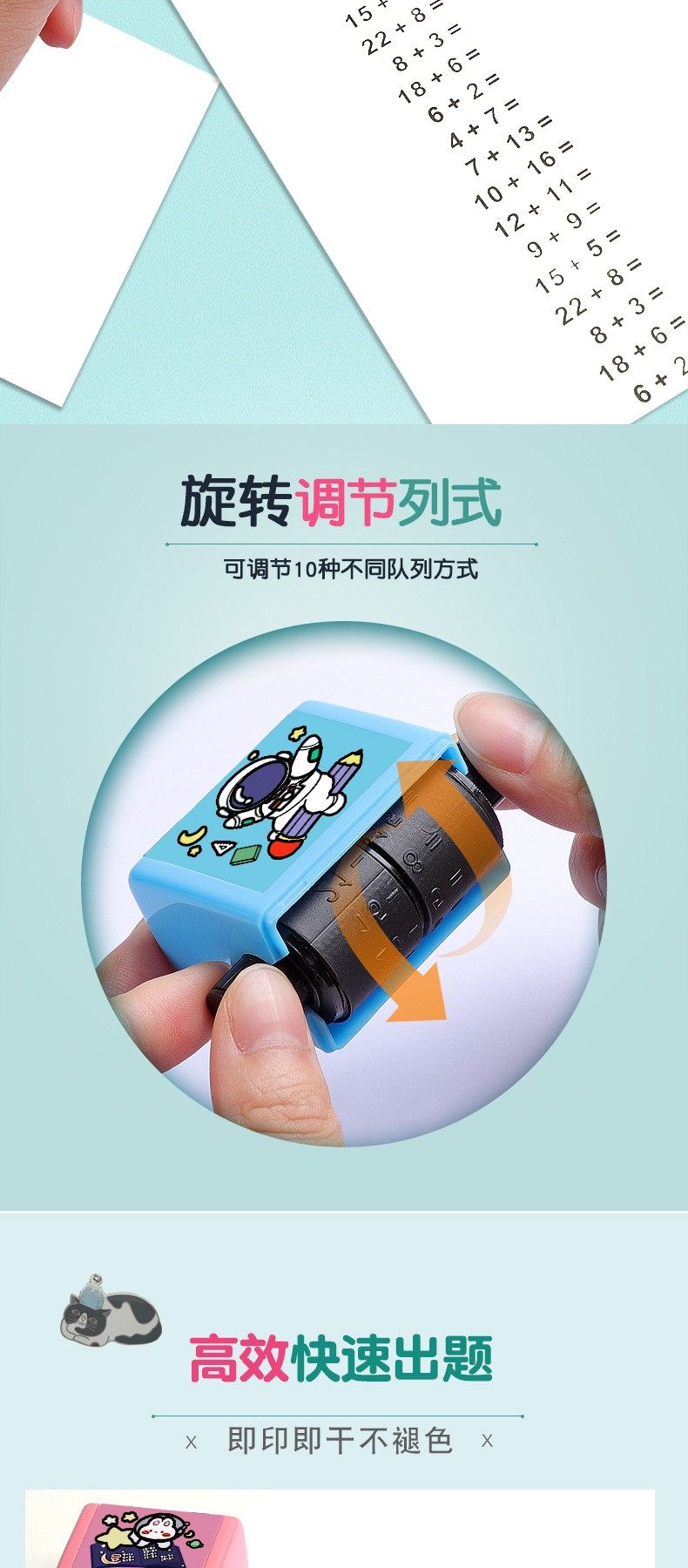 Prueba de matemáticas para niños padres del maestro enseñando sello de rodillo Adición de sello de enseñanza para niños, resta, multiplicación y entrenamiento de división