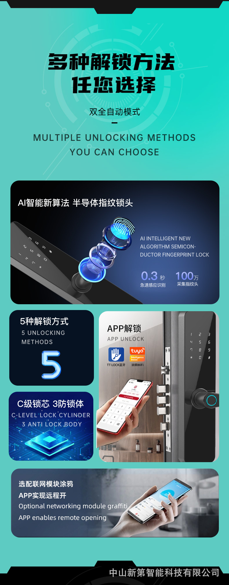 Nueva cerradura inteligente, cerradura de huellas dactilares, cerradura de puerta inteligente, puerta de casa, puerta de oficina, cerradura de apartamento, cerradura de hotel, cuerpo de cerradura de contraseña
