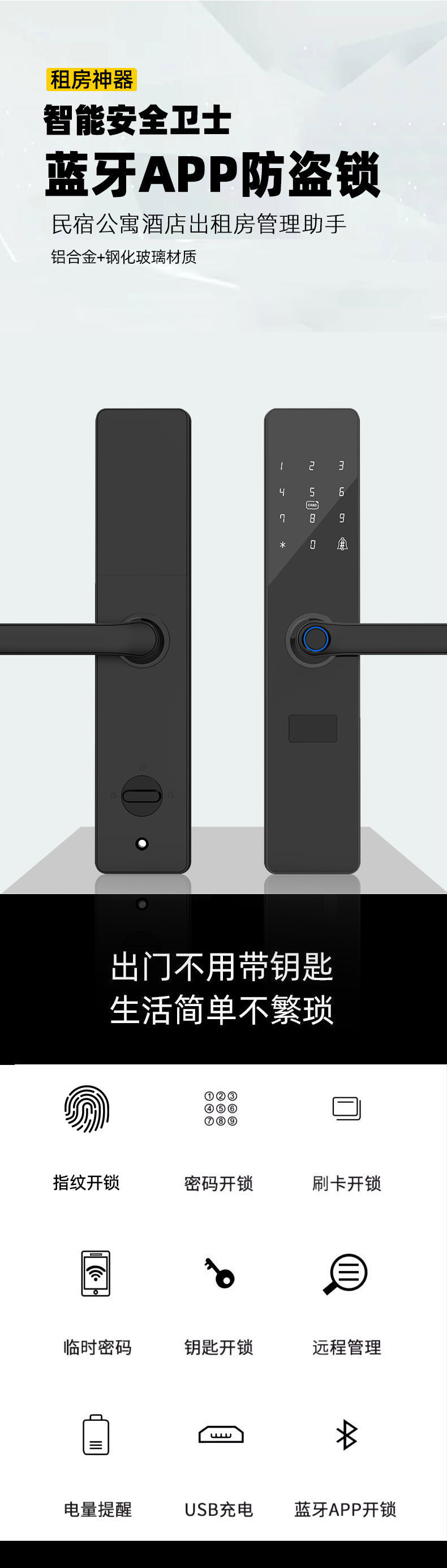 Cerradura Tongtong Hotel Apartment B & B Gestión remota Cerradura inteligente Puerta antirrobo Cerradura de contraseña de huellas dactilares Cerradura electrónica Bluetooth IC