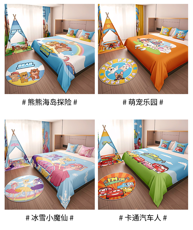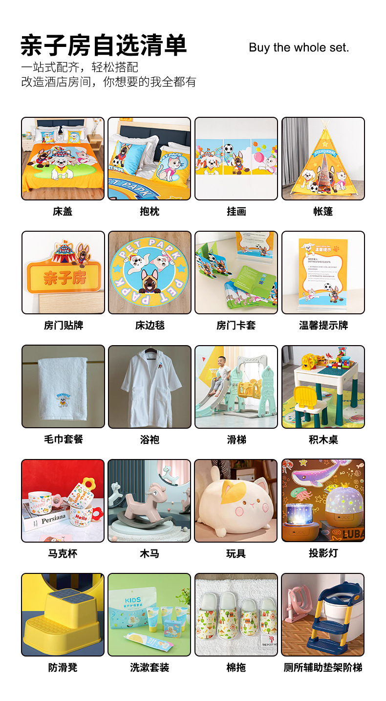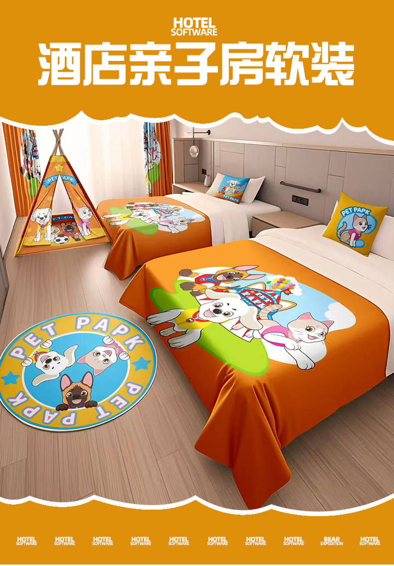 Hotel diseño de la habitación entre padres e hijos hotel para niños lindo tema de dibujos animados para mascotas decoración de la habitación familiar cama cubierta cama cola toalla almohada