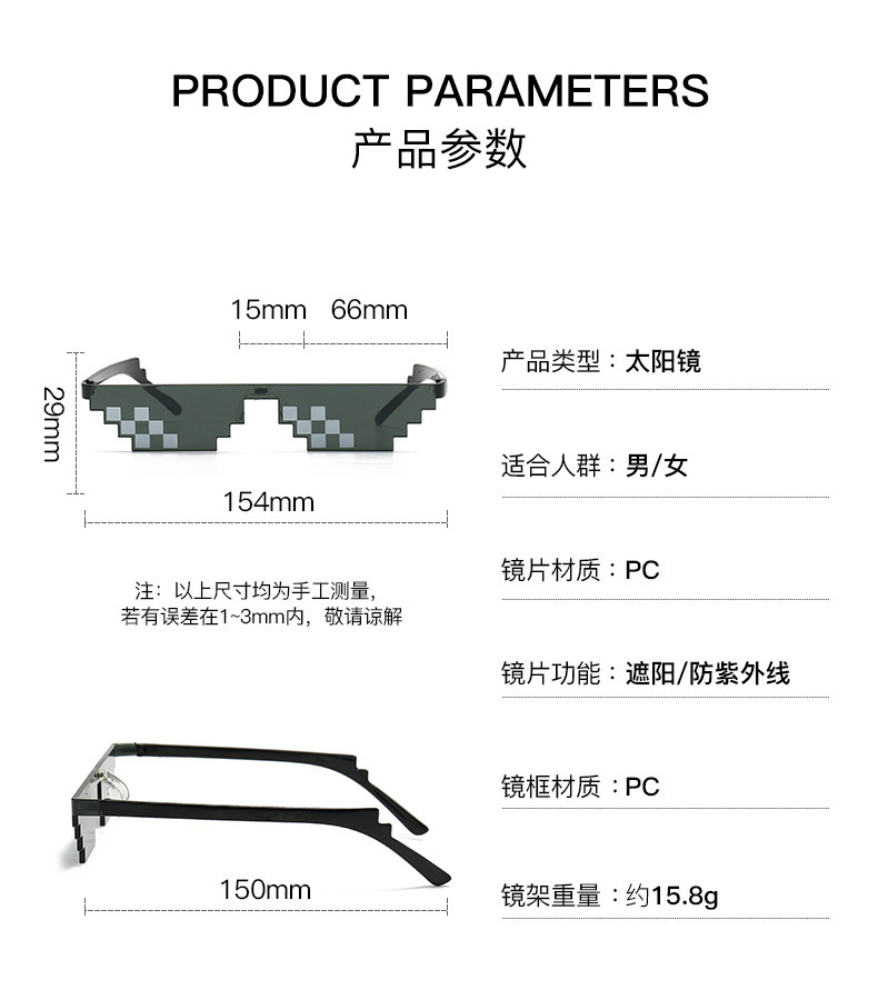 Gafas de fiesta de mosaico de celebridades de Internet para hombres y mujeres, artefactos divertidos, estudiantes, gafas de sol negras, gafas de sol de píxeles personalizadas
