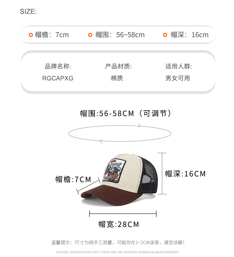 Moda hip-hop dibujos animados anime sombrero personalidad ala ancha camión americano sombrero del conductor sombrero del sol pato animal malla
