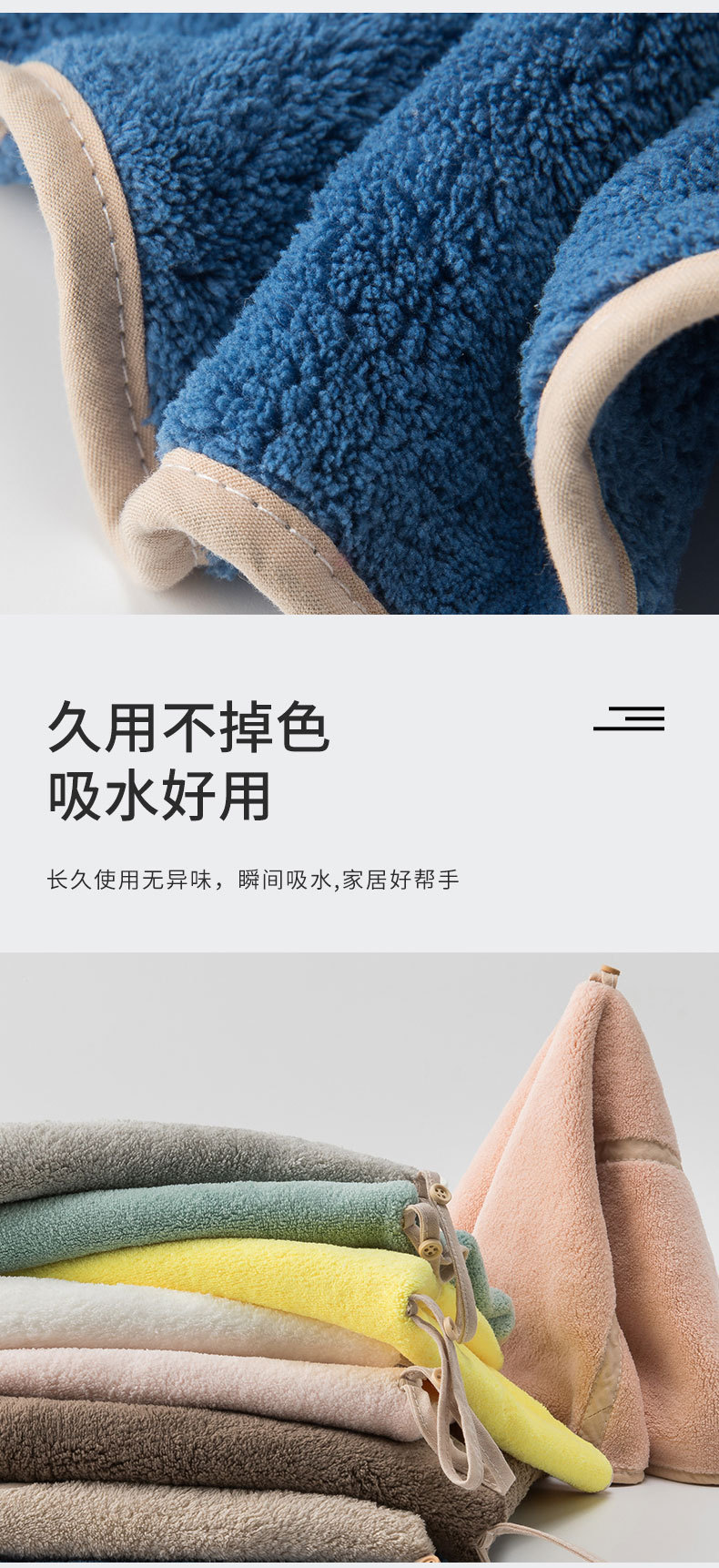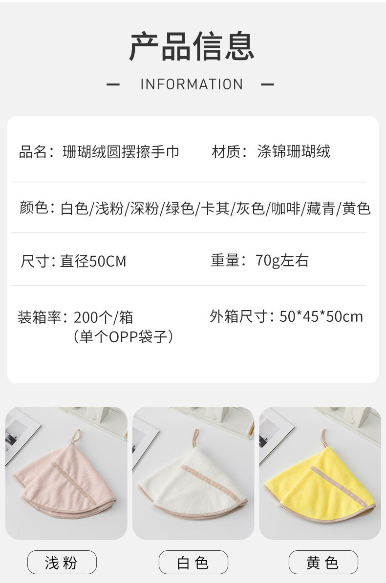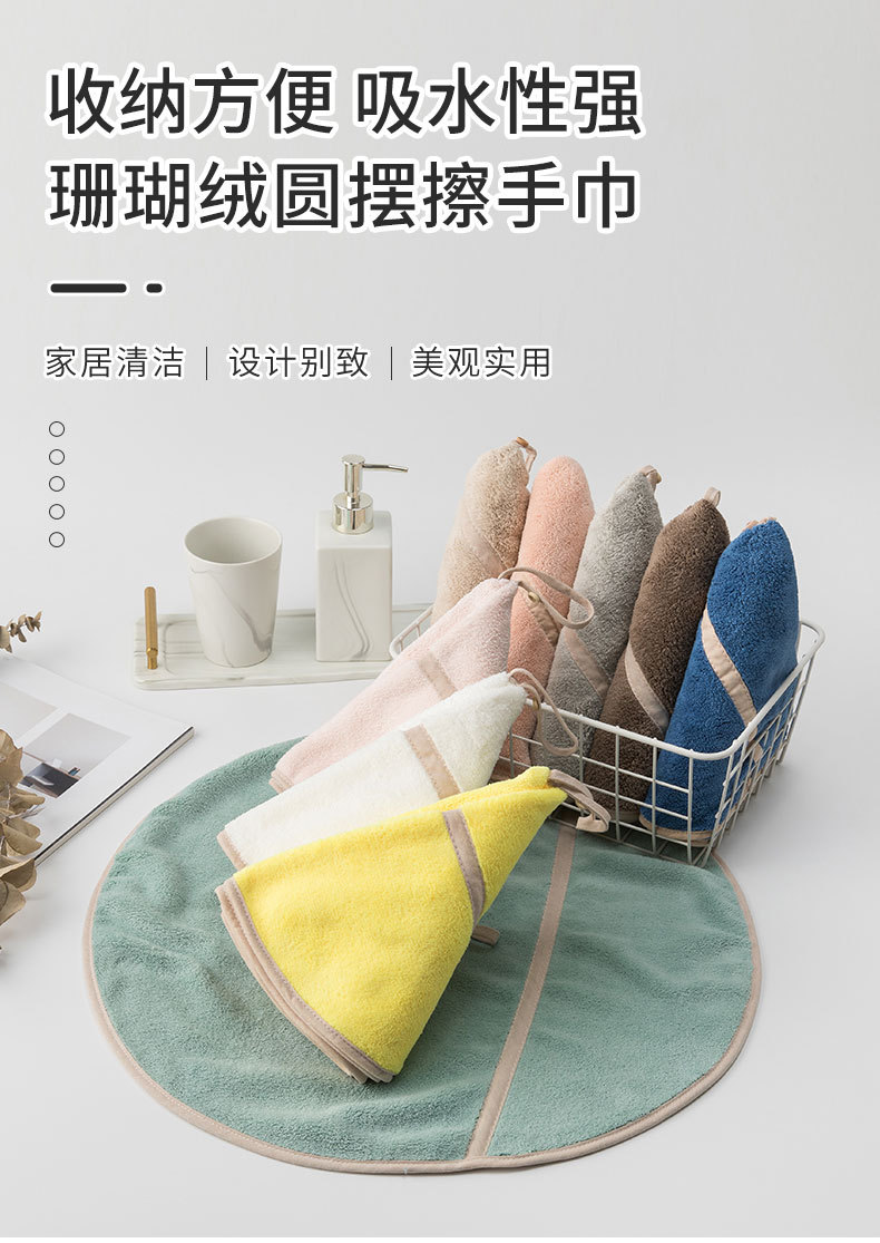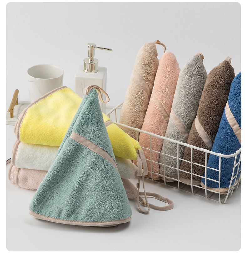 Colgando toalla de mano de lana de coral trapo toalla de cocina paño redondo swing toalla de mano limpieza fuerte absorbente