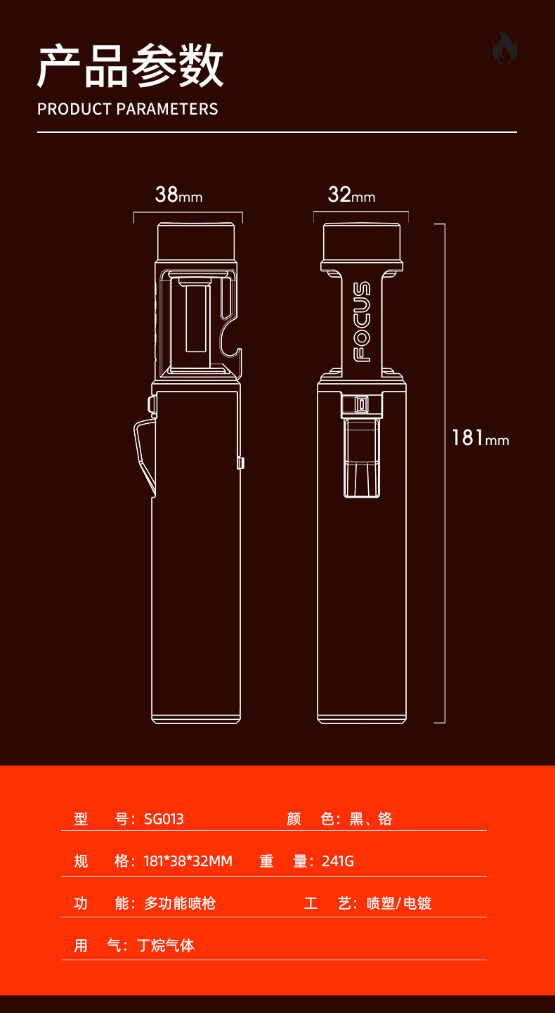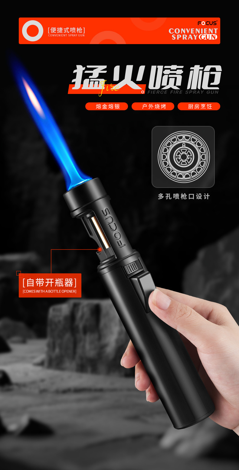 Encendedor creativo pistola llama grande, a prueba viento, abridor botellas, diseño directo rojo.