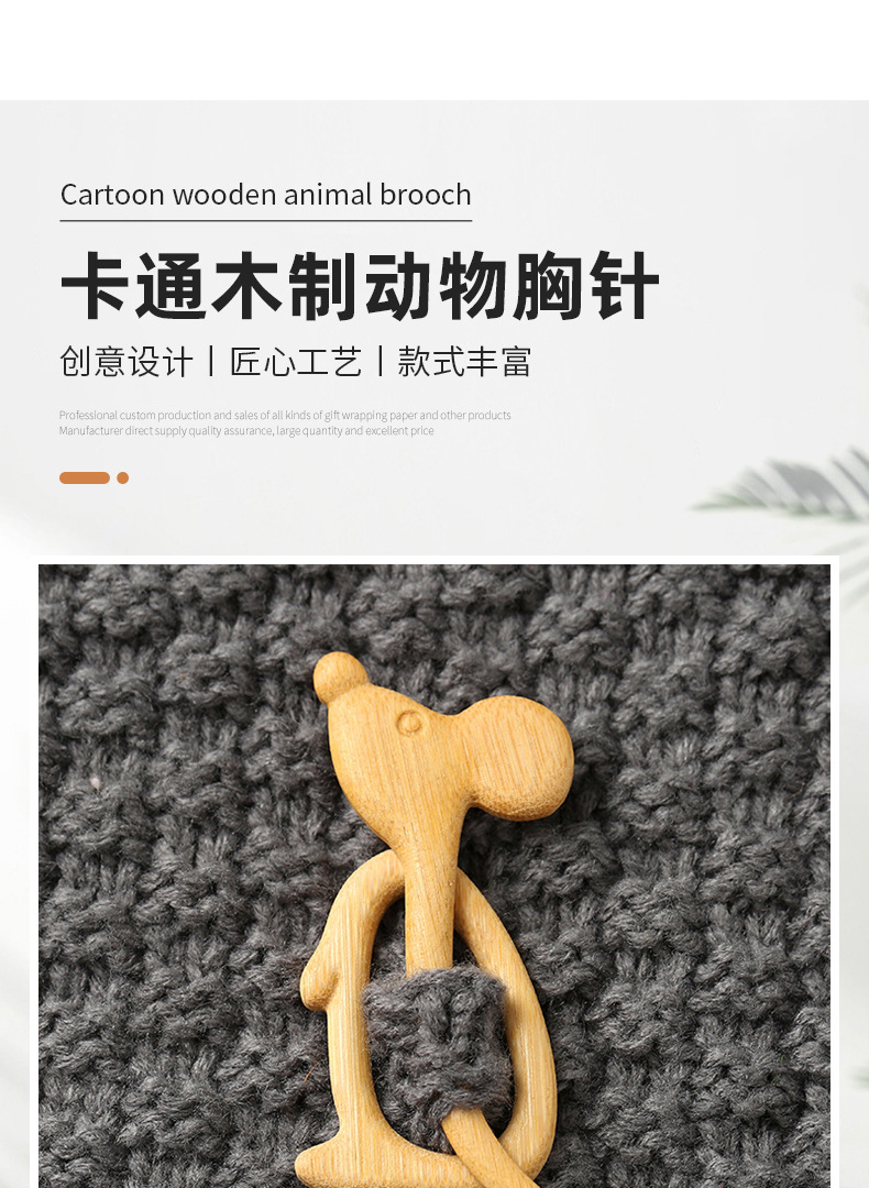 Broche madera pin con diseño animal, regalo original y artesanal.