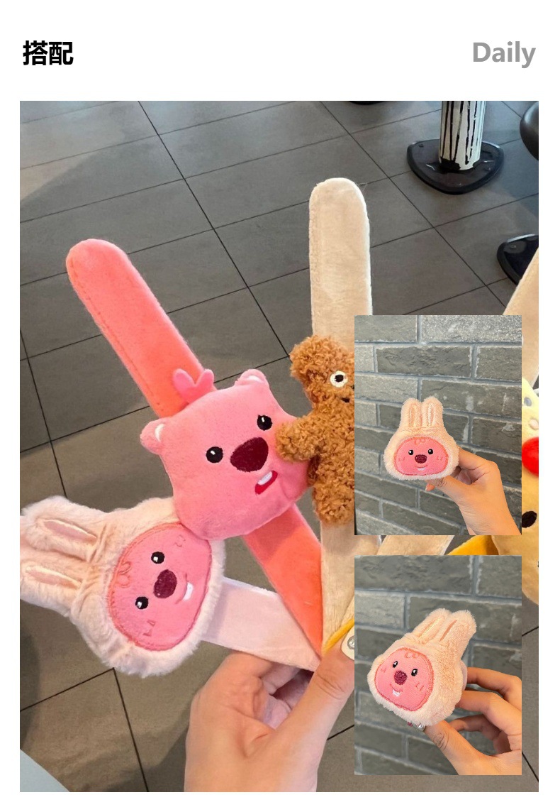 Anillo de felpa de dibujos animados, oso de mantequilla, correa de reloj de boda, pulsera para niños Kapibala, regalo de muñeca creativa