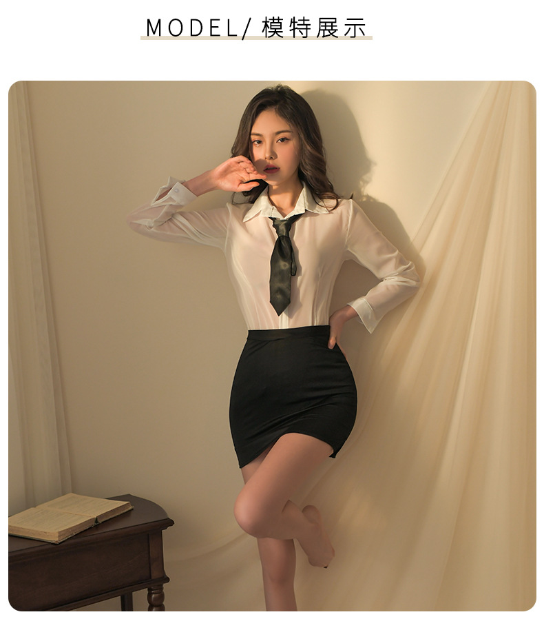 Sexy lingerie apretada bolsa de cadera secretaria OL uniformes seducción maestra set de mujer puro deseo medias un cabello