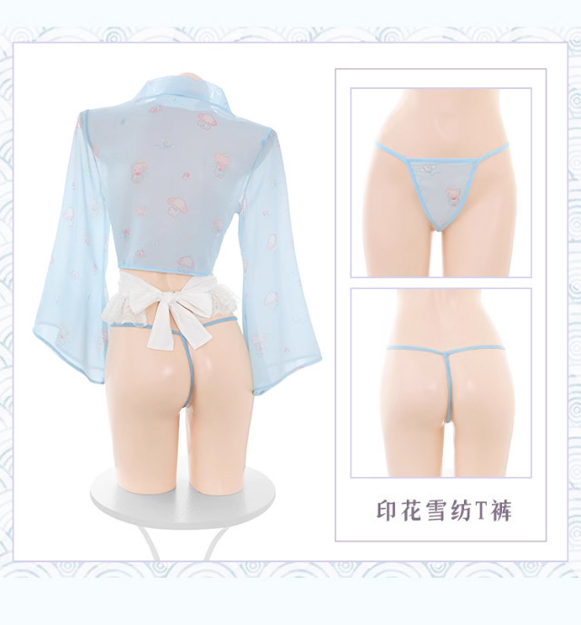 Lencería sexy Leche Conejo Maid Uniform Salsa Japón lindo puro deseo Conejo estampado estilo japonés Camisón con lazo