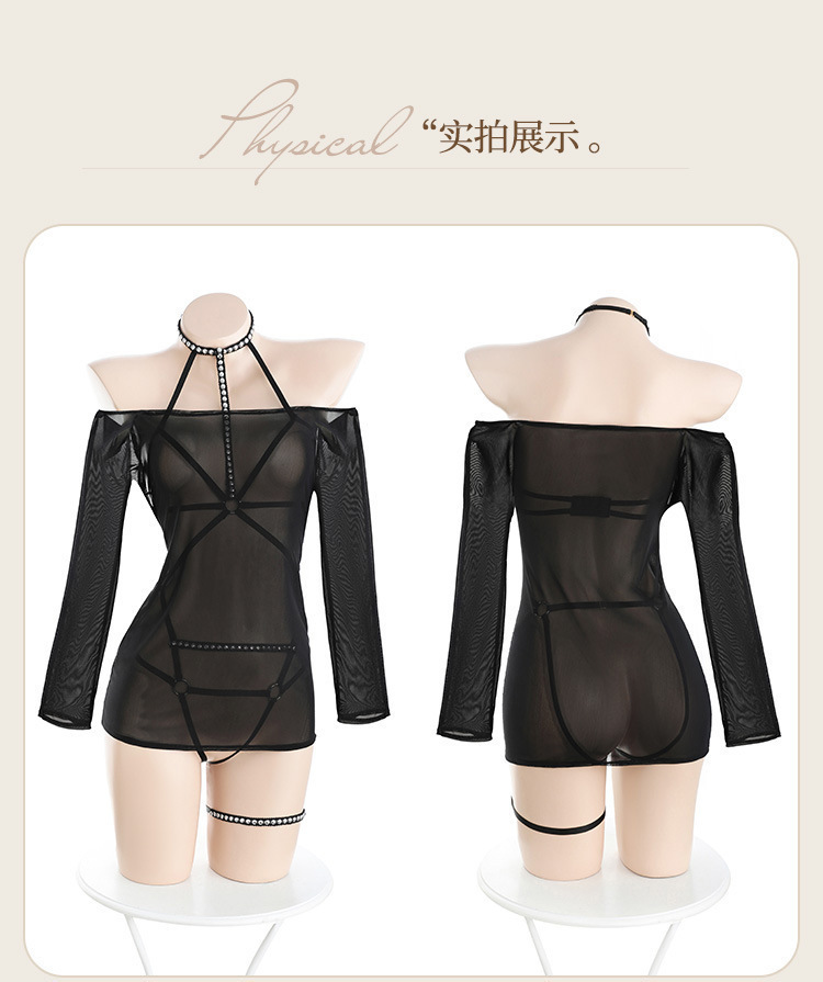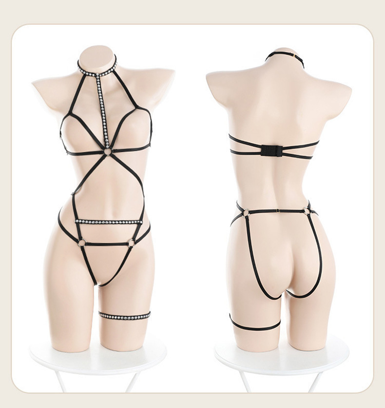 Sexy ropa interior sexy perspectiva real hermana tul entrepierna remache bondage montaje SM traje pasión
