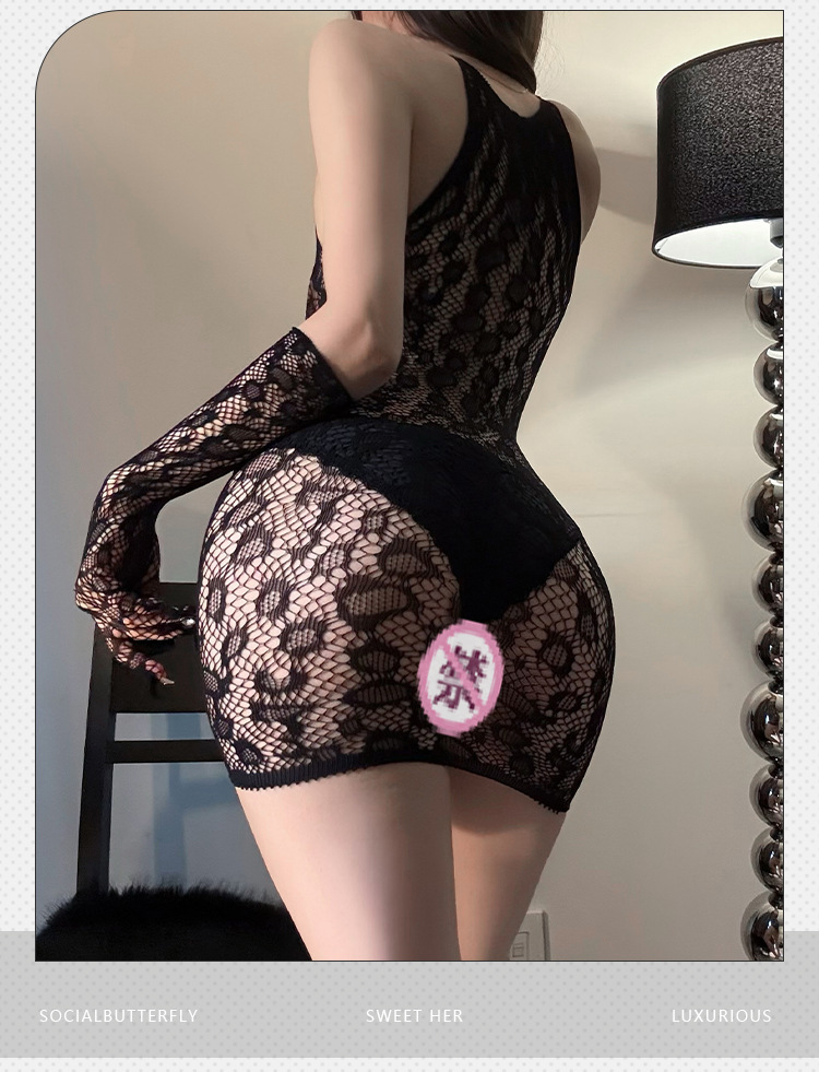 Ropa interior sexy, falda de malla de zanja, tentación, transparente de talla grande, sin sin bolsa, pijama de cadera, guantes de camisón de pasión