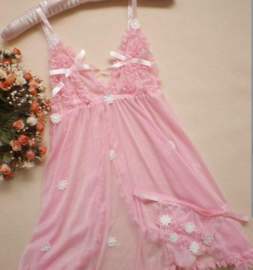 Nightclub sexy lencería sexy Correa pijamas juego uniforme femenino Rosa pequeña flor Correa camisón más tamaño discoteca Pijamas